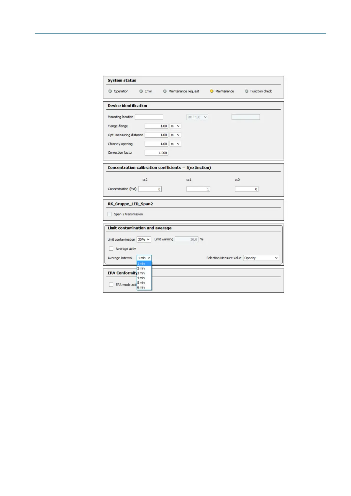 Fig. 45: SOPAS ET menu: DH T200/Configuration/Application parameter (example)