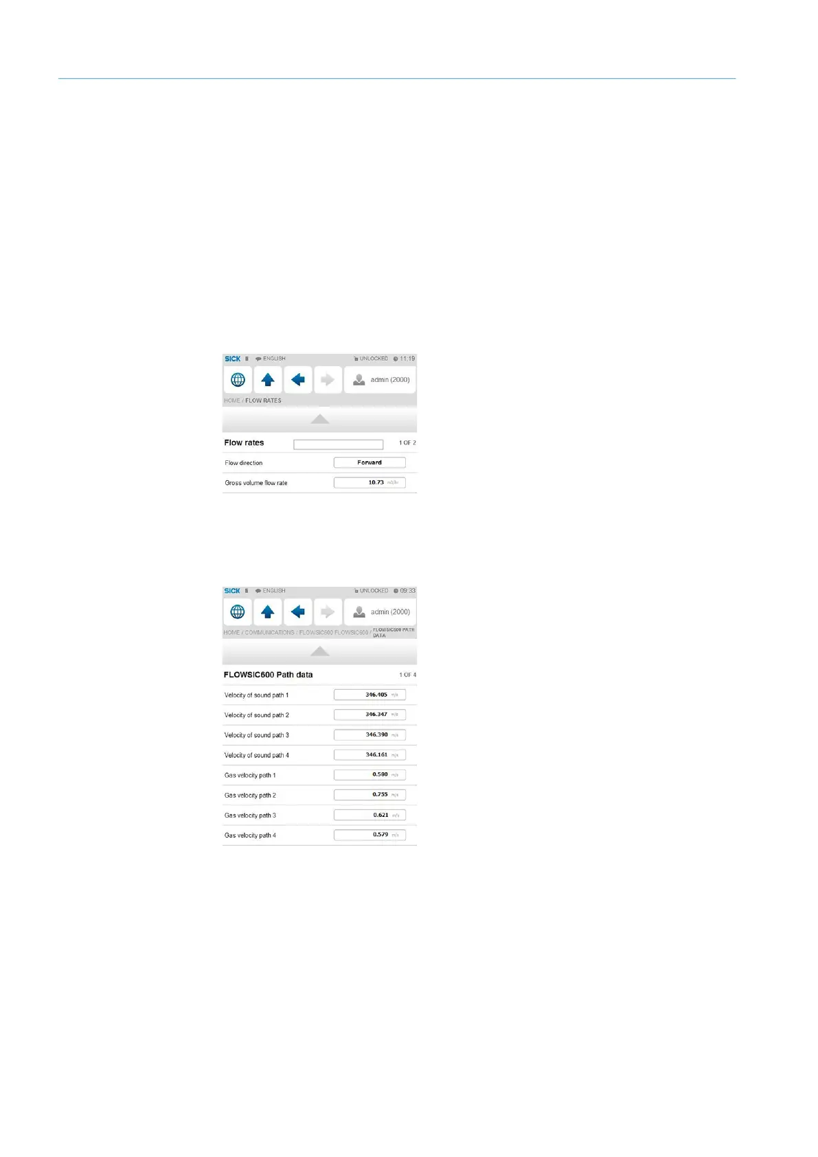 5 In menu item “Flow rates”, check that the Flow-X flow computer receives data from the