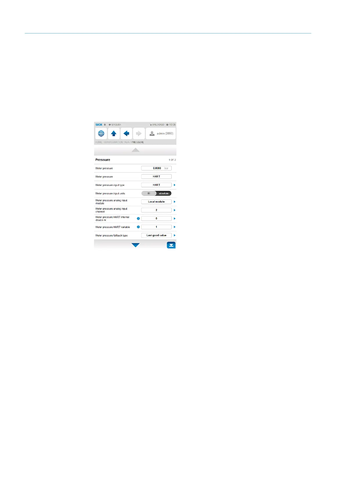 Fig. 34: Menu item “Configuration/Run/Pressure