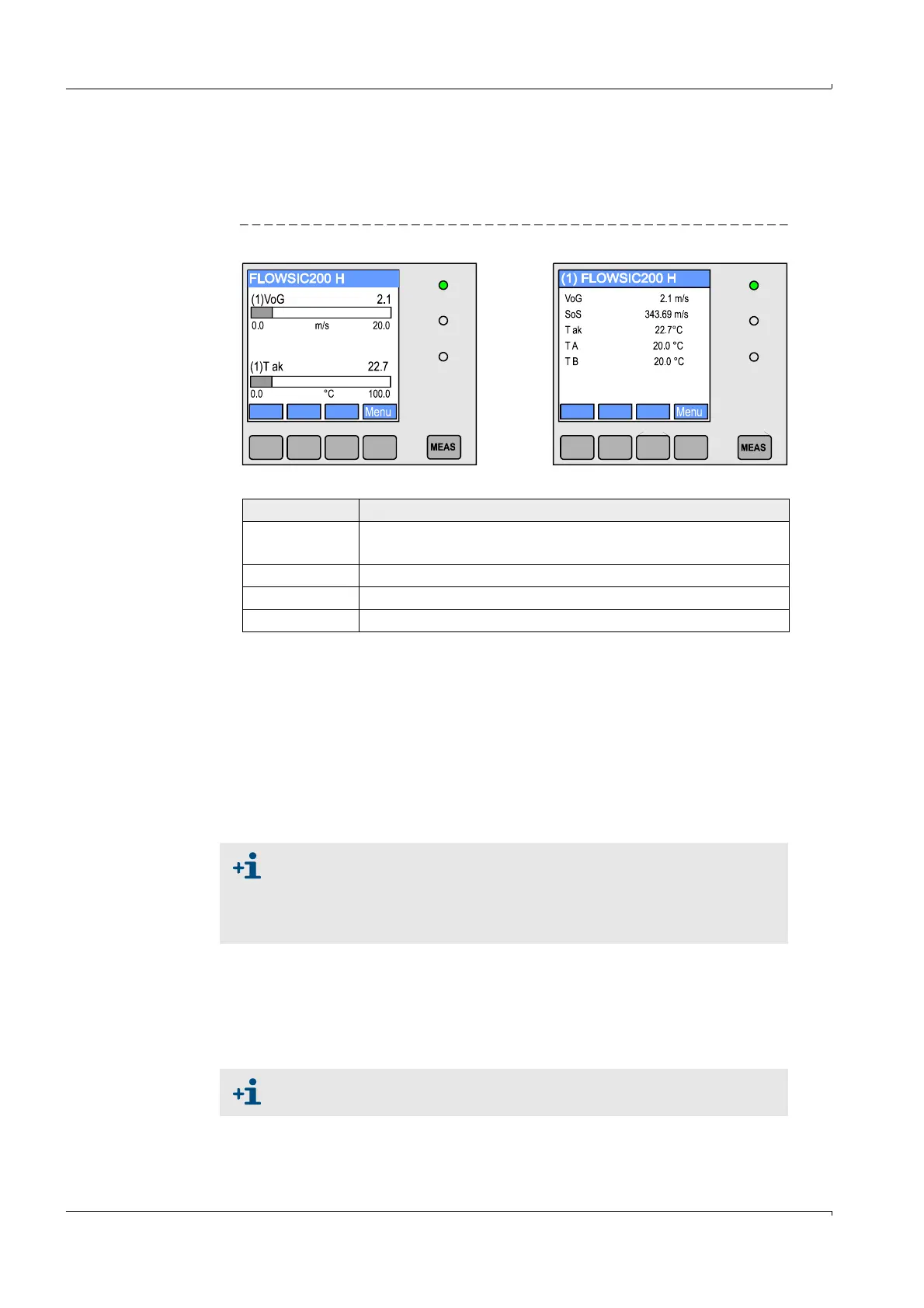 measured values of a sender/receiver unit can be displayed (toggle with “Meas”