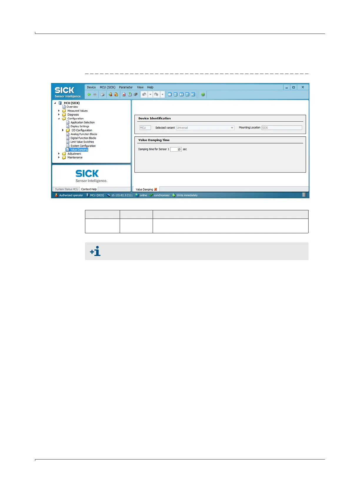 Fig. 64 Directory “Configuration / Value Damping (display for a connected sender/receiver unit)