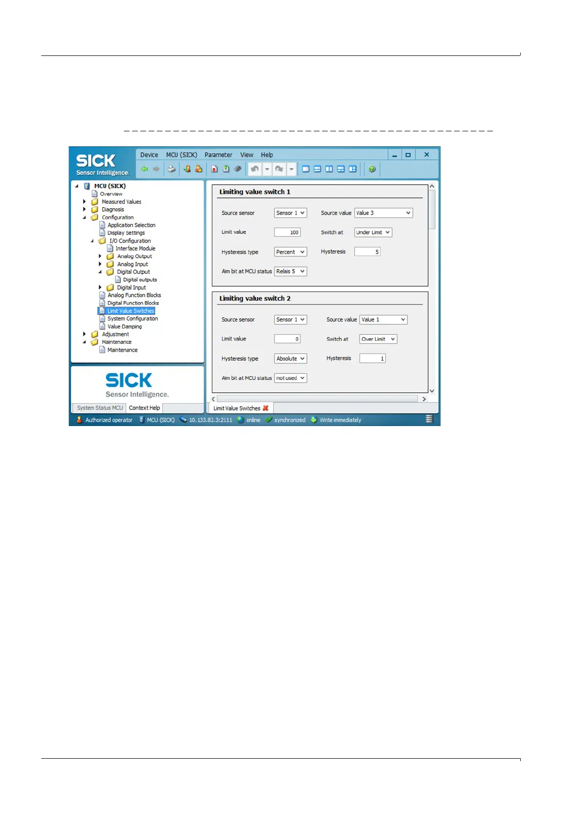 Select the ”Configuration / Limit Values Switches” directory for assigning. Configure