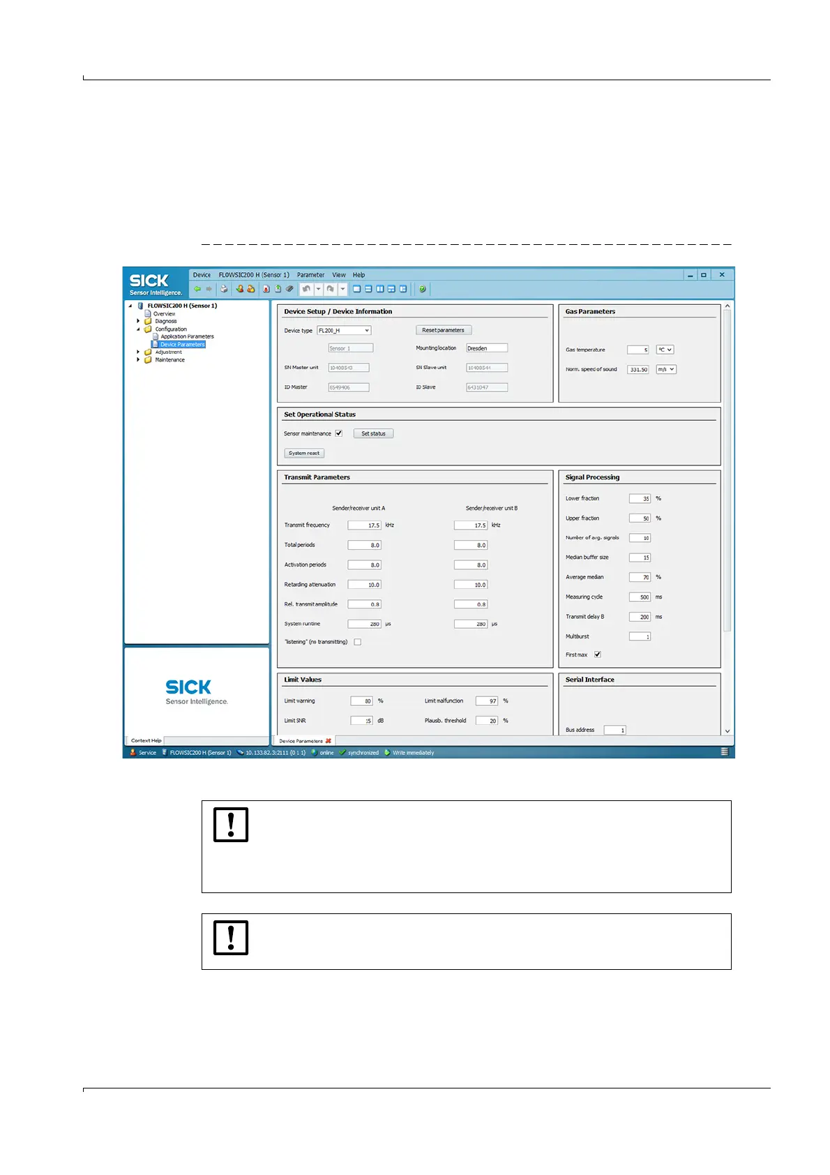 ET, select device file “FLOWSIC200 M“, “FLOWSIC200 H” or “FLOWSIC200 H-M“ and set