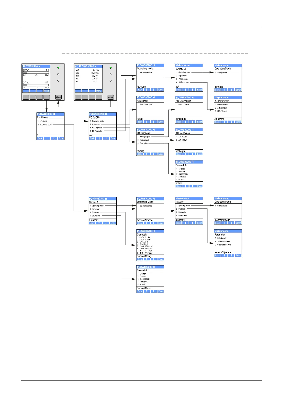 Fig. 88 Menu structure LC display (shown for FLOWSIC200 H)