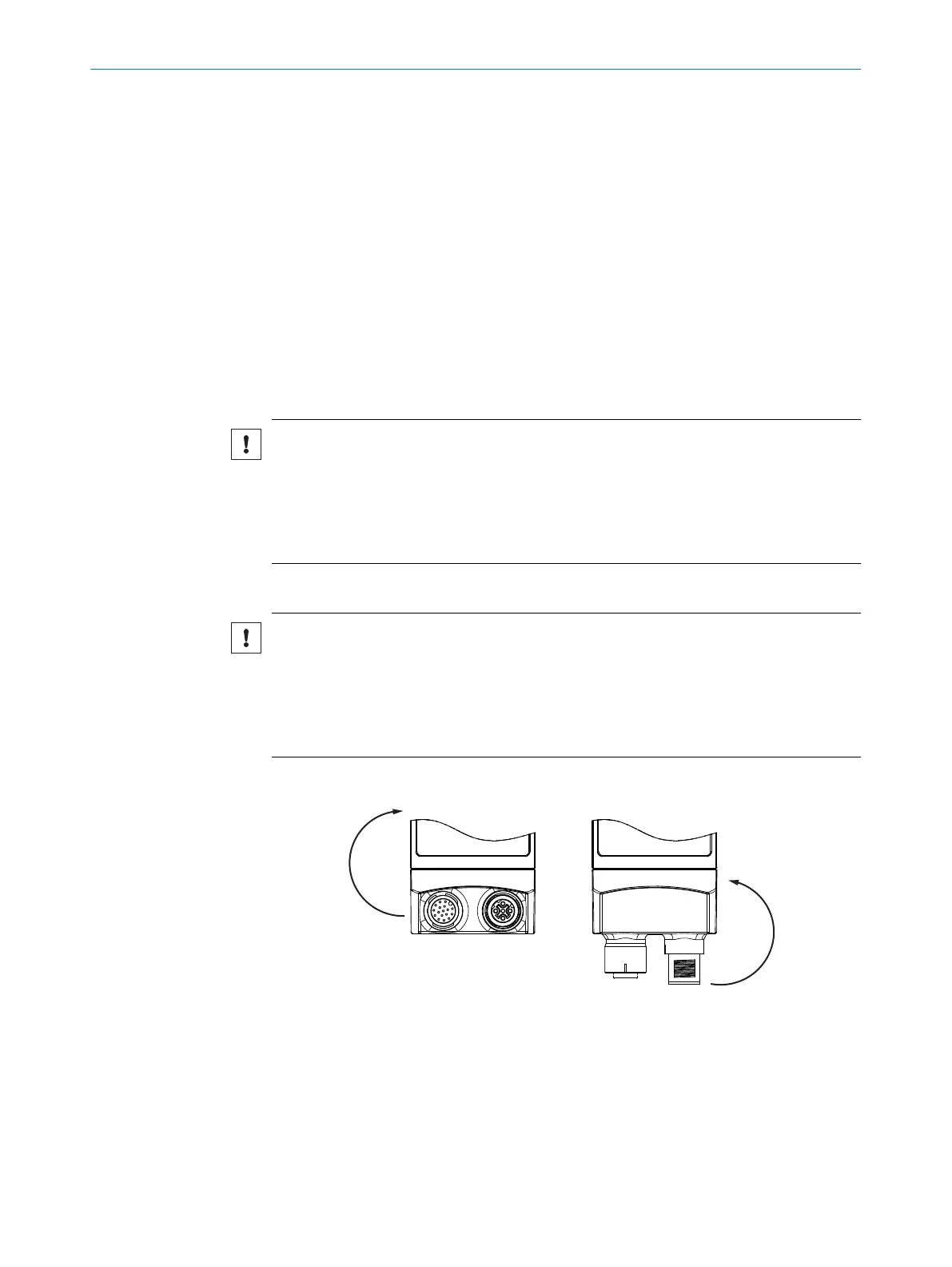 The cables plugged into the two electrical M12 connections must be screwed on
