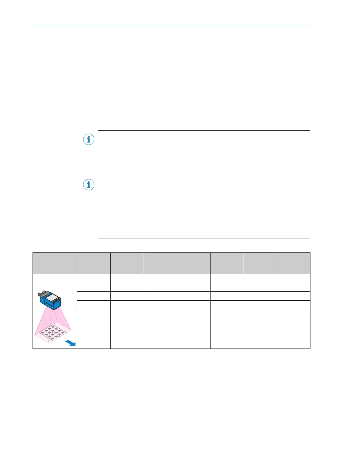 Depending on the set working distance, the mounting alignment and the 2D codes