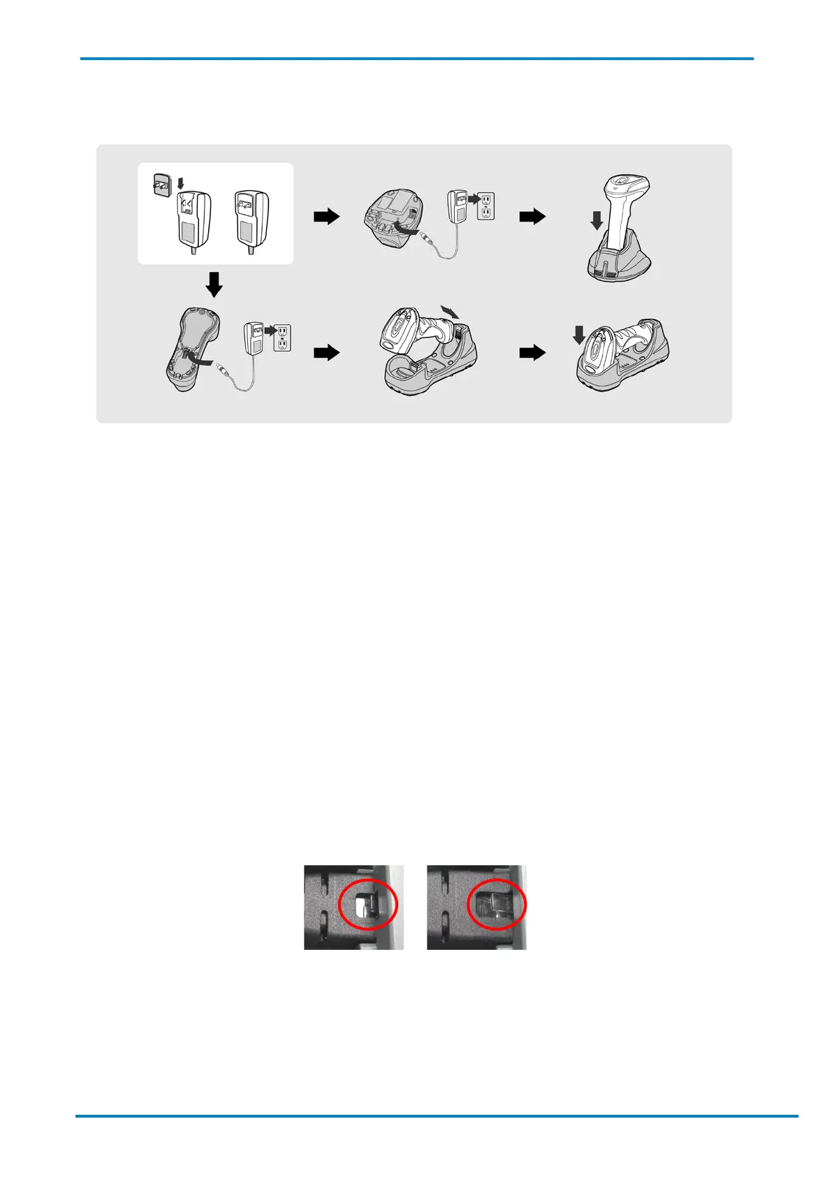 While charging is in progress, the status indicator on the scanner lights up permanently in red. Once the battery is