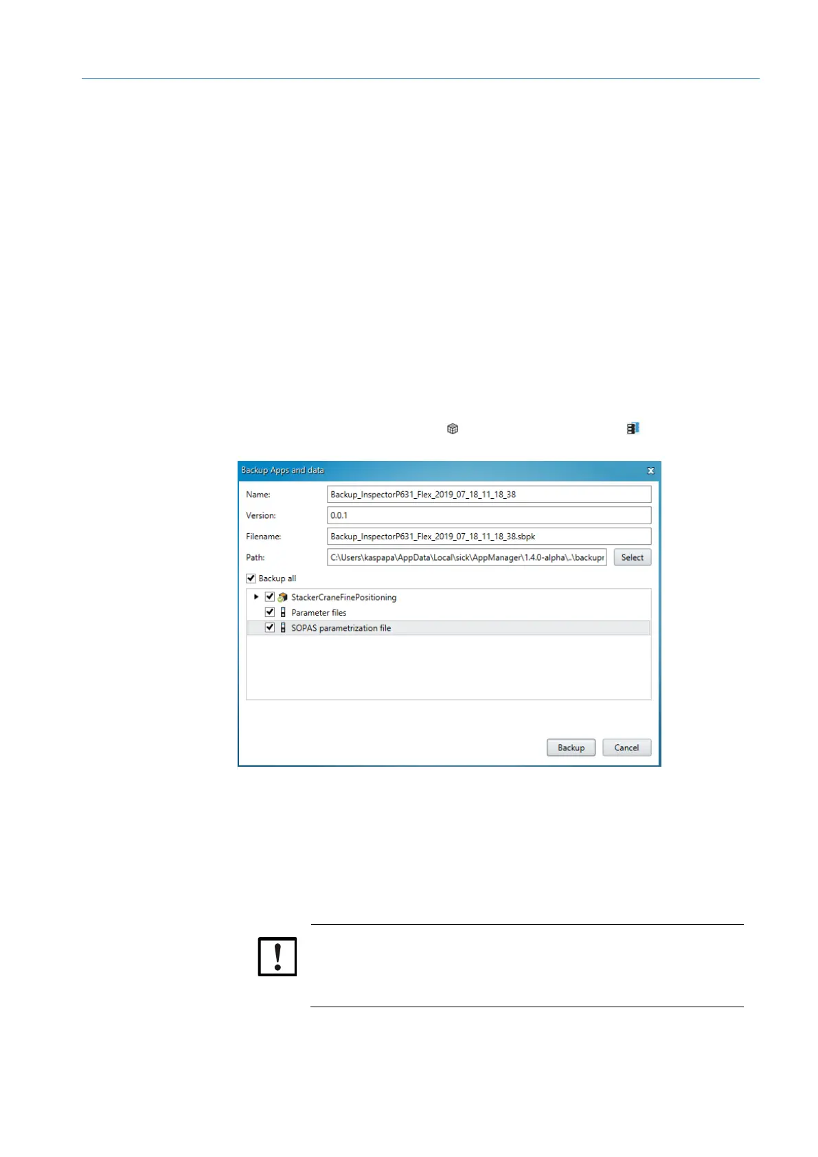 The currently valid parameter set can be backed up using SICK AppManager.