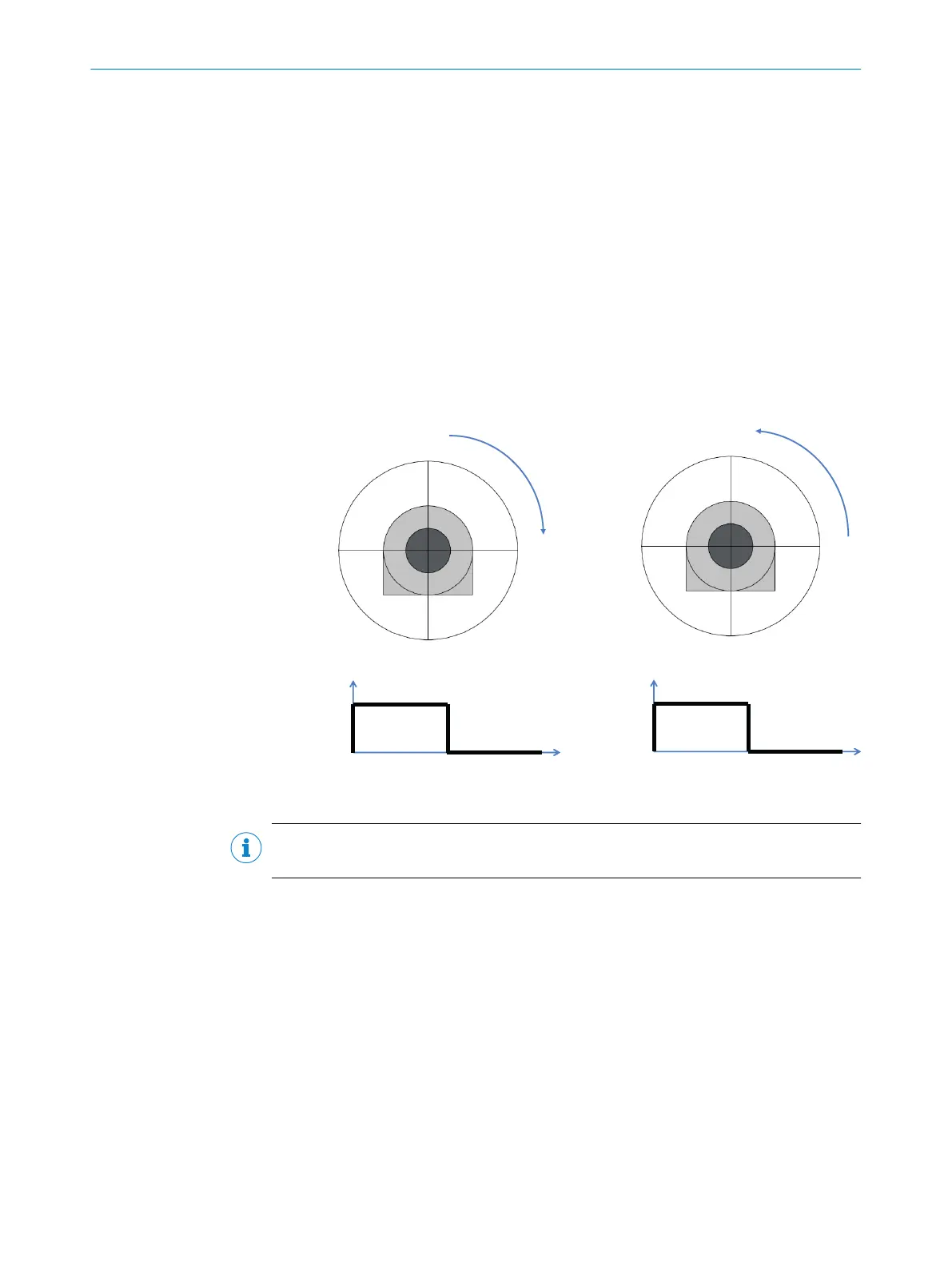Via index (pulse at hardware output): The device outputs a signal depending on