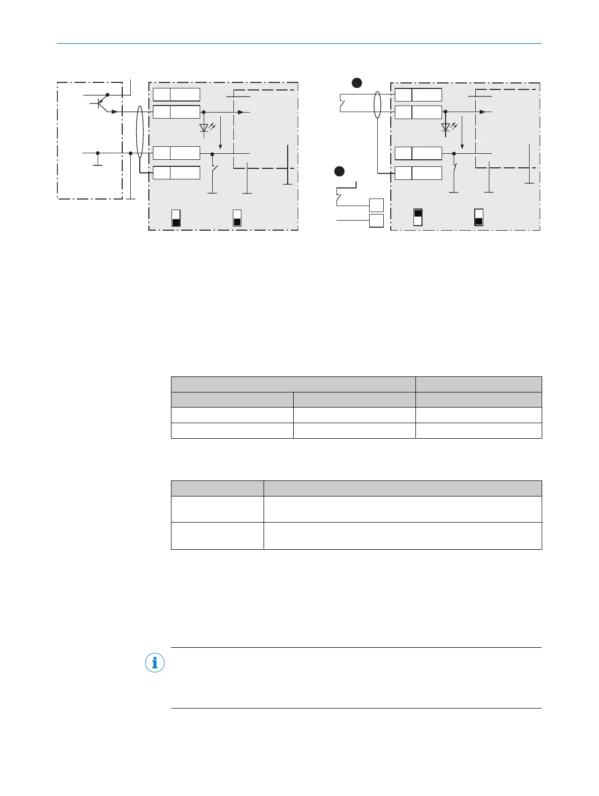 Figure 27: Left: Trigger sensor connected potential-free and supplied with power externally. Right: Alternatively switch,