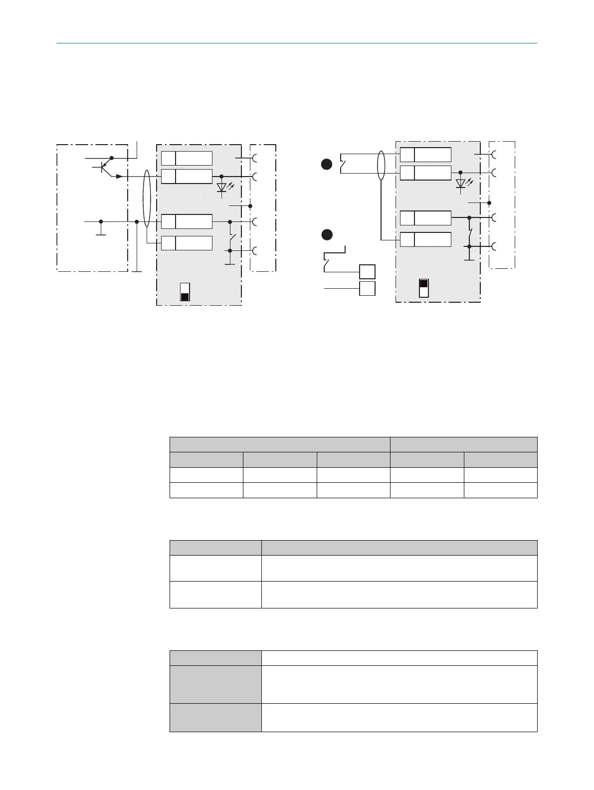 Figure 37: Left: Trigger sensor connected potential-free and supplied with power externally. Right: Alternatively switch,