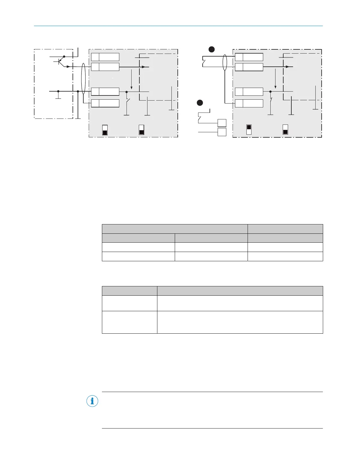 Figure 39: Left: Trigger sensor connected potential-free and supplied with power externally. Right: Alternatively switch,