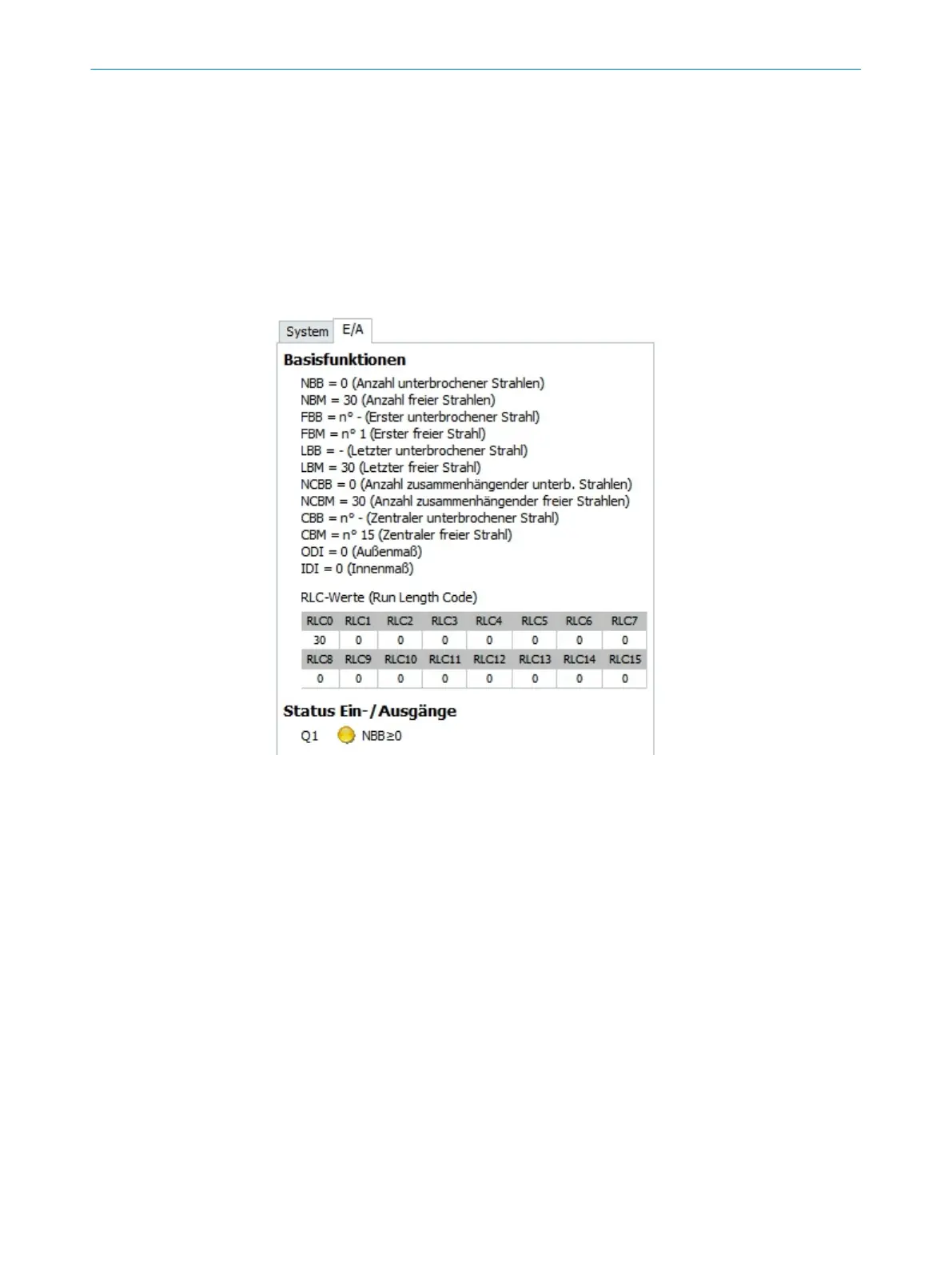 The current values for the beam functions (see "Beam functions", page 107)