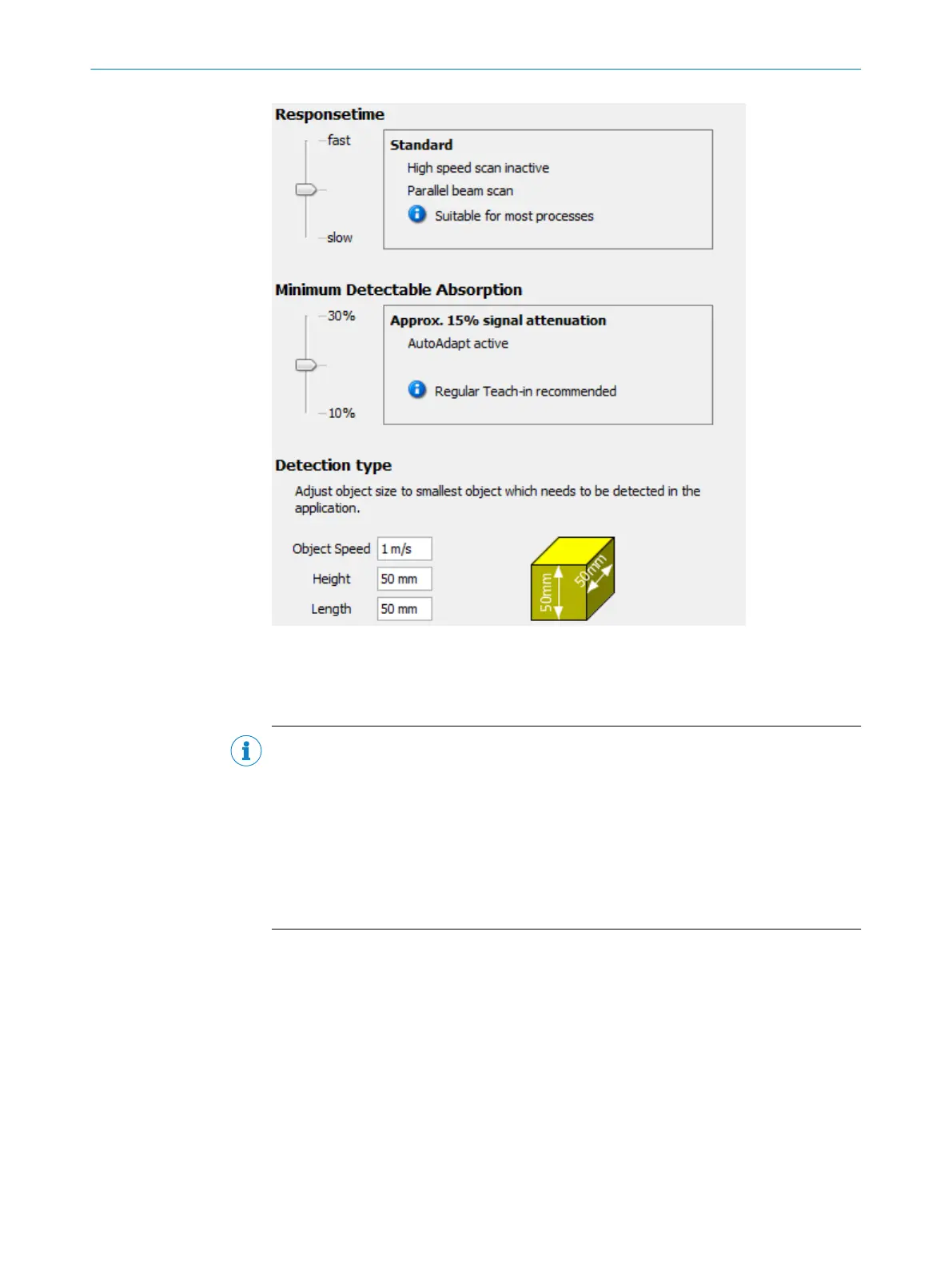 You can change the response time, operating reserve, or minimum detectable absorp‐