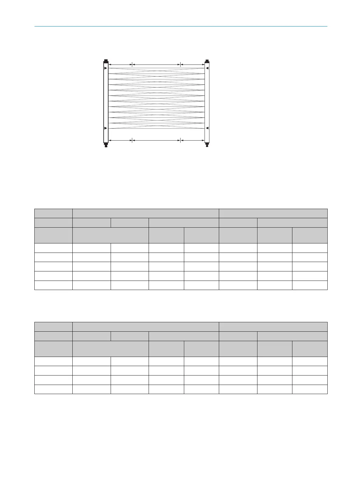 Table 7: Cross-beam function, operating range 5 m – Minimum detectable object (stationary object) with standard measure‐
