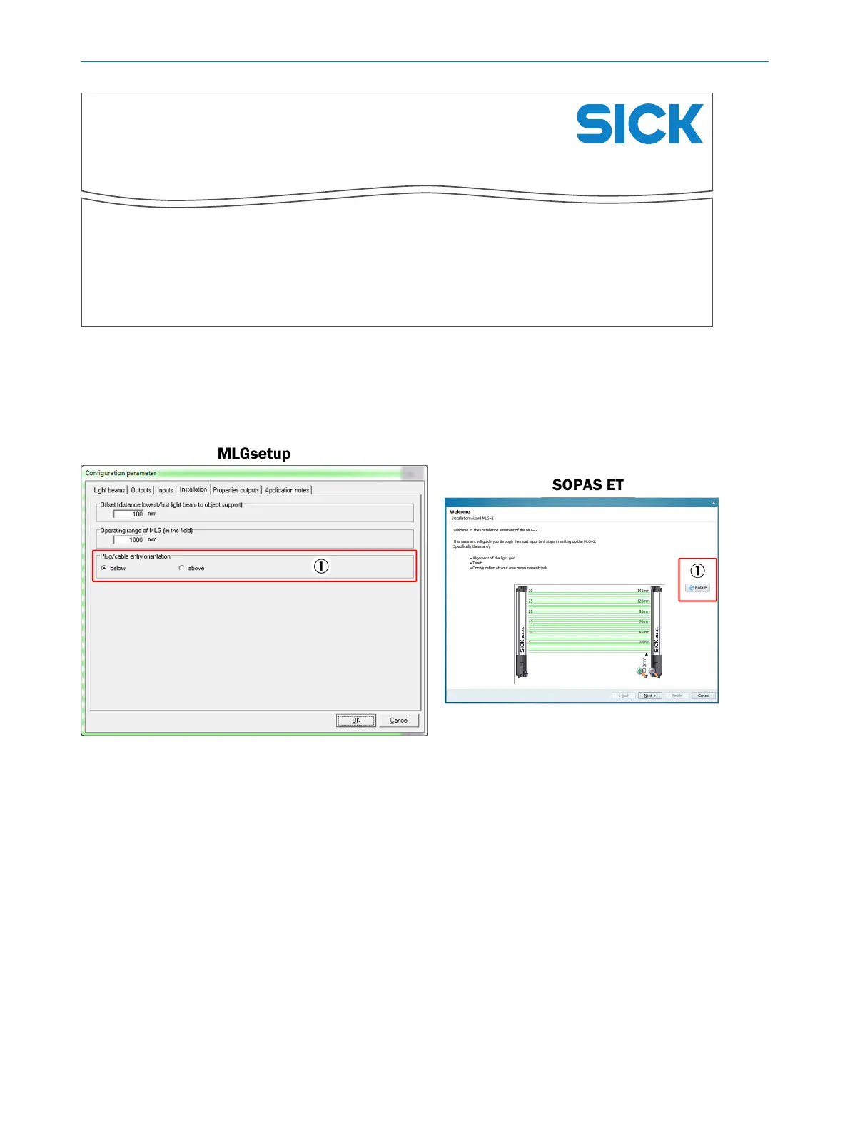 Orientation: This should be set via the SOPAS ET installation wizard when setting up the MLG-2. Alternatively, it can be