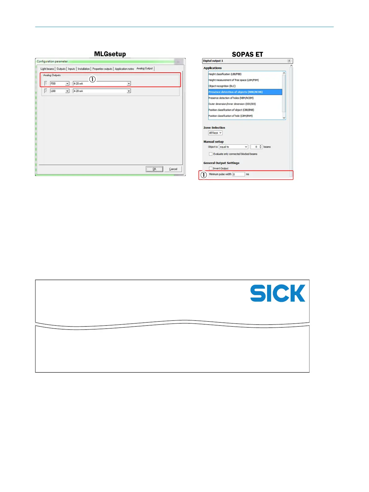 Figure 22: Output properties in MLGsetup and SOPAS ET