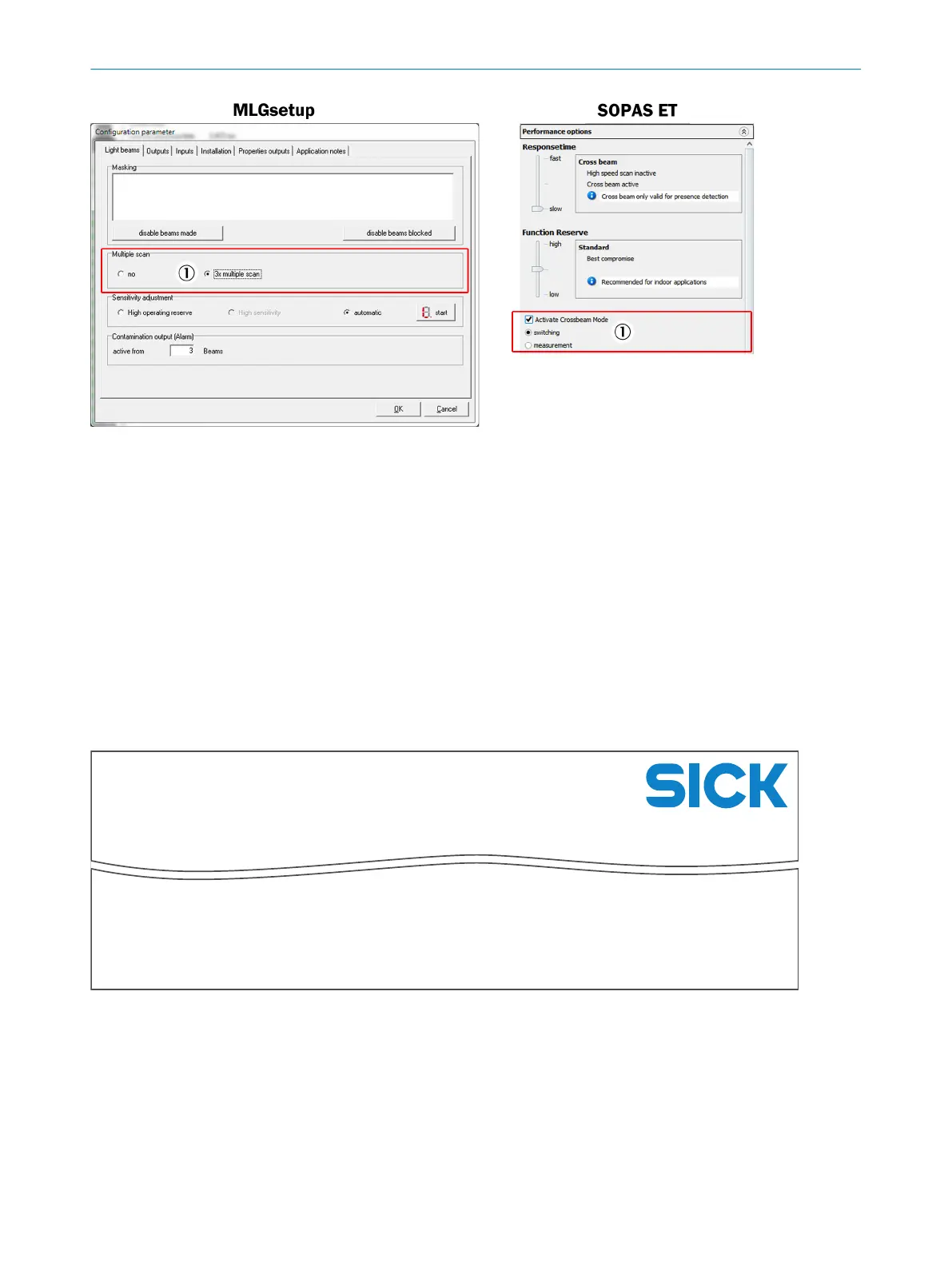 Figure 24: Light beams in MLGsetup and SOPAS ET