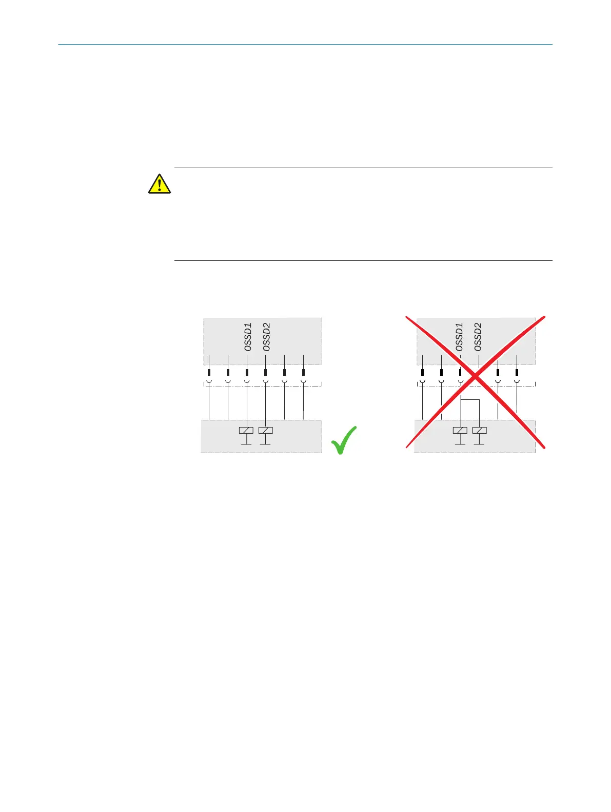 In the machine controller, both signals from an OSSD pair must be processed sep‐
