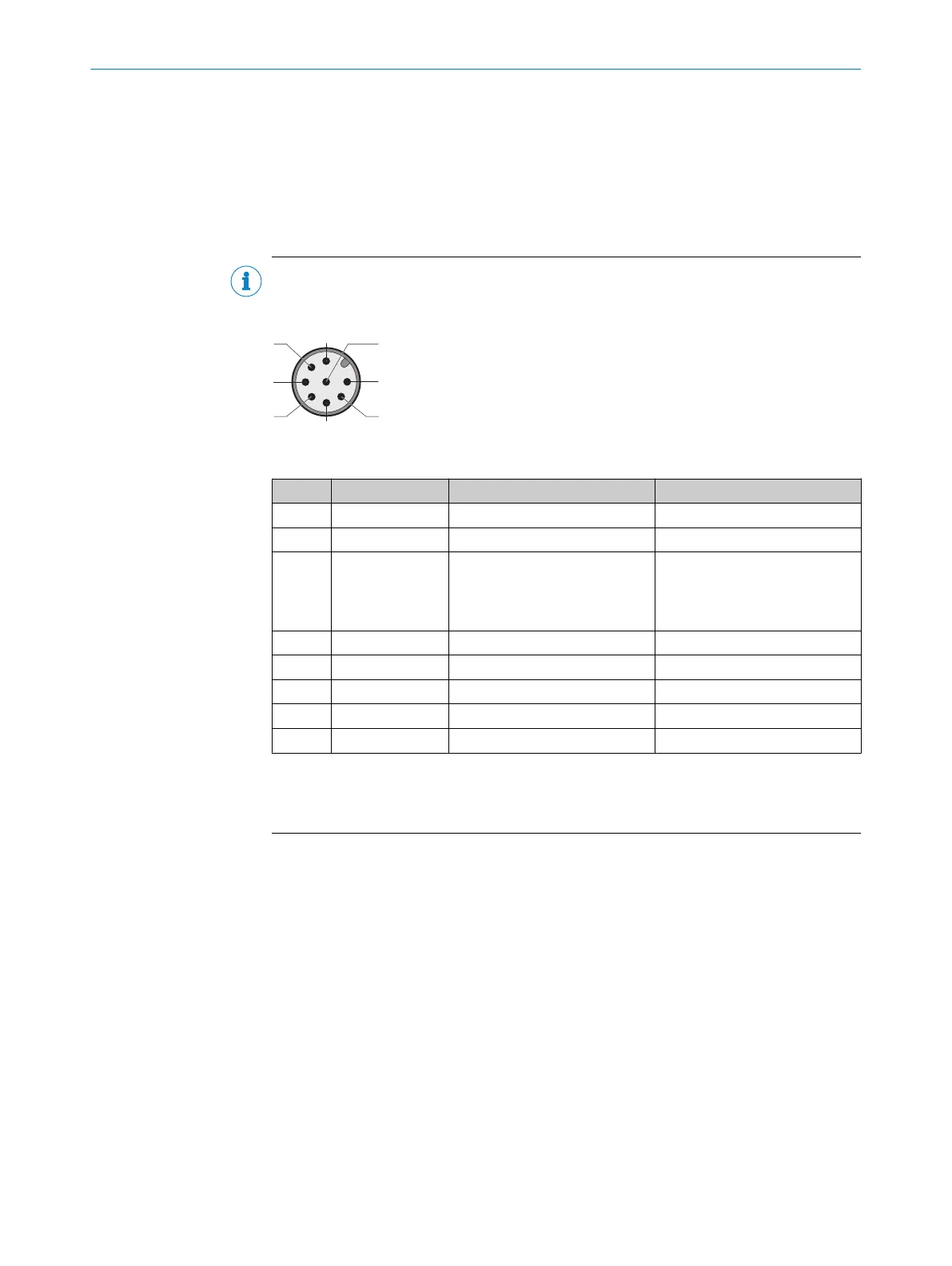 Table 9: Device connection pin assignment (male connector, M12, 8-pin, A-coded)