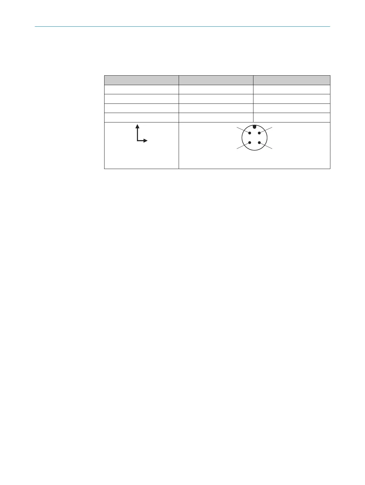 Table 8: Pin assignment for male connector, M12, A-coded, 4-pin
