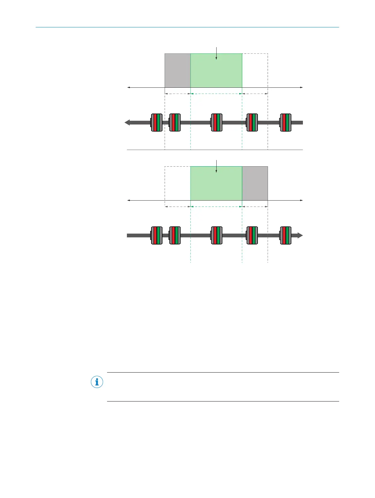 Example: Arrangement of switching points for dynamic teach-in of 2 switching points