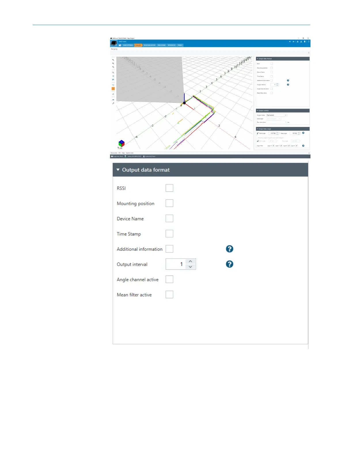 Field evaluation: Scan display for adapting the field geometry (left-hand side) and