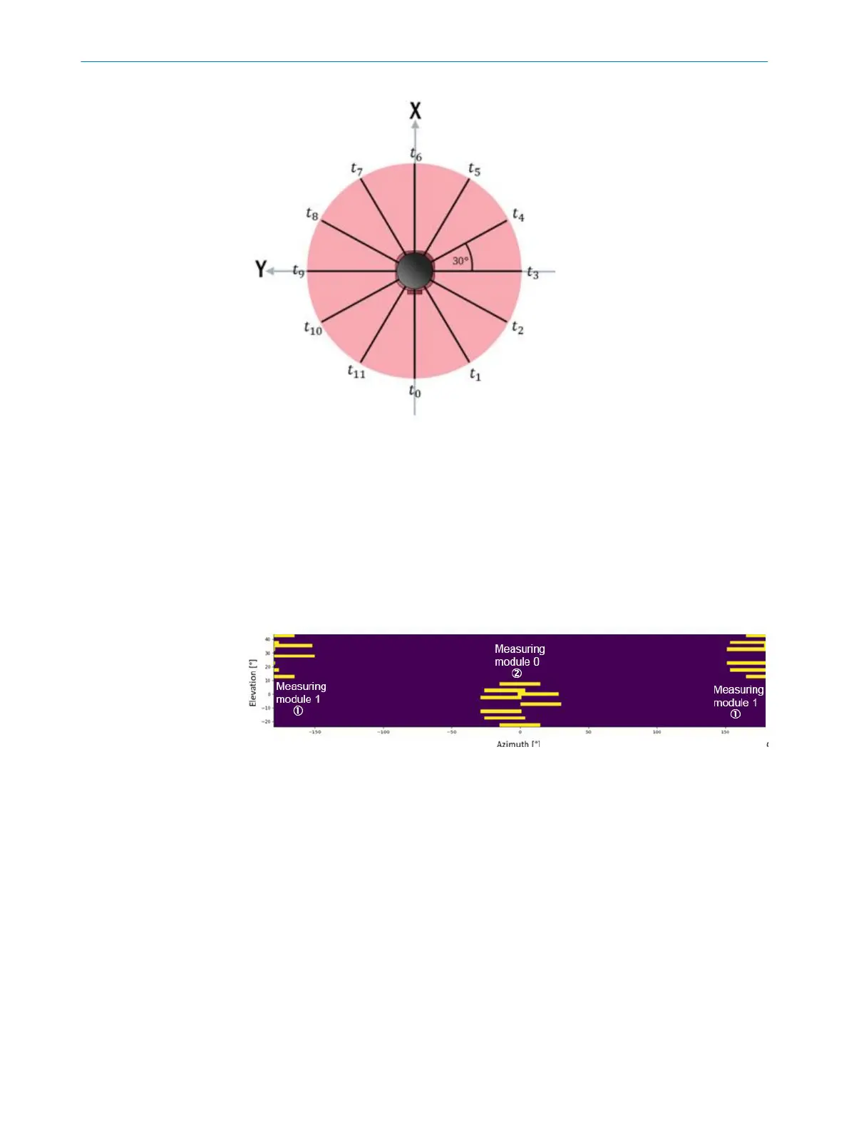 the sender/receiver units on each measuring module have an azimuth offset, the