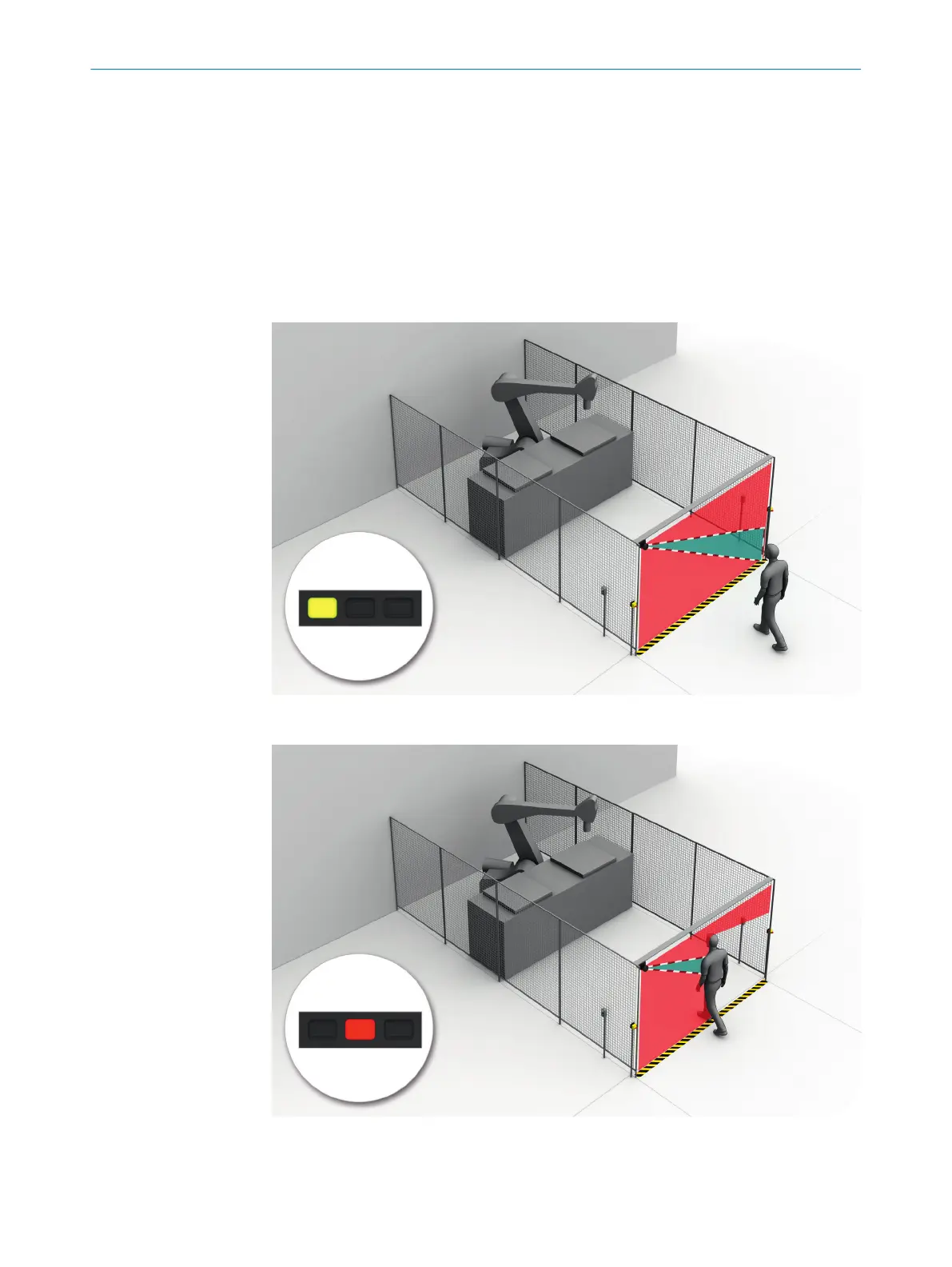 Figure 27: How the restart interlock works (1):no one in protective field, machine operates