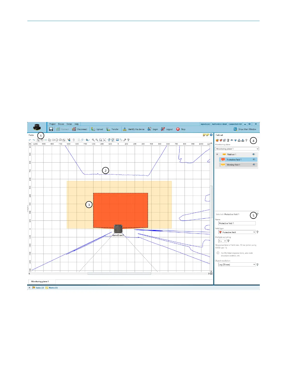 Using the field editor, you can configure the field sets of the safety laser scanner. The