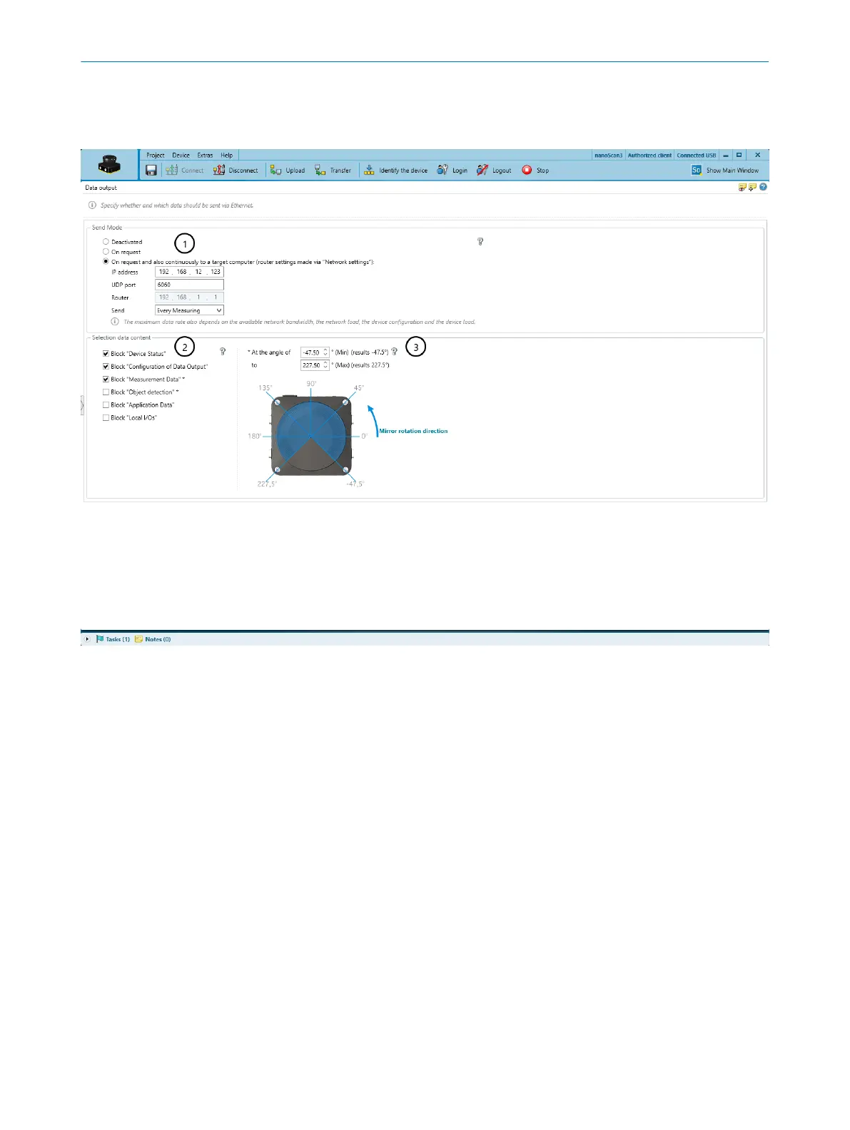 settings”):: Data is output continuously via UDP to a defined target address and