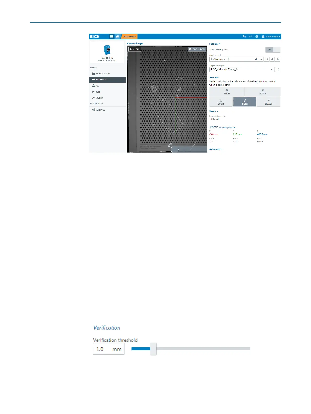 Use the Verification threshold slider to set the tolerance for how much the sensor and