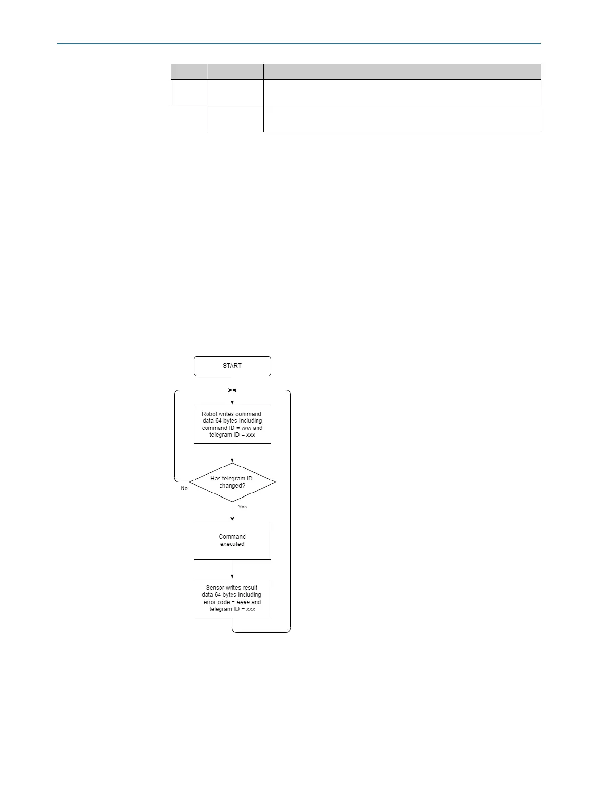 1. The robot writes command arguments to the command data field (64 bytes),