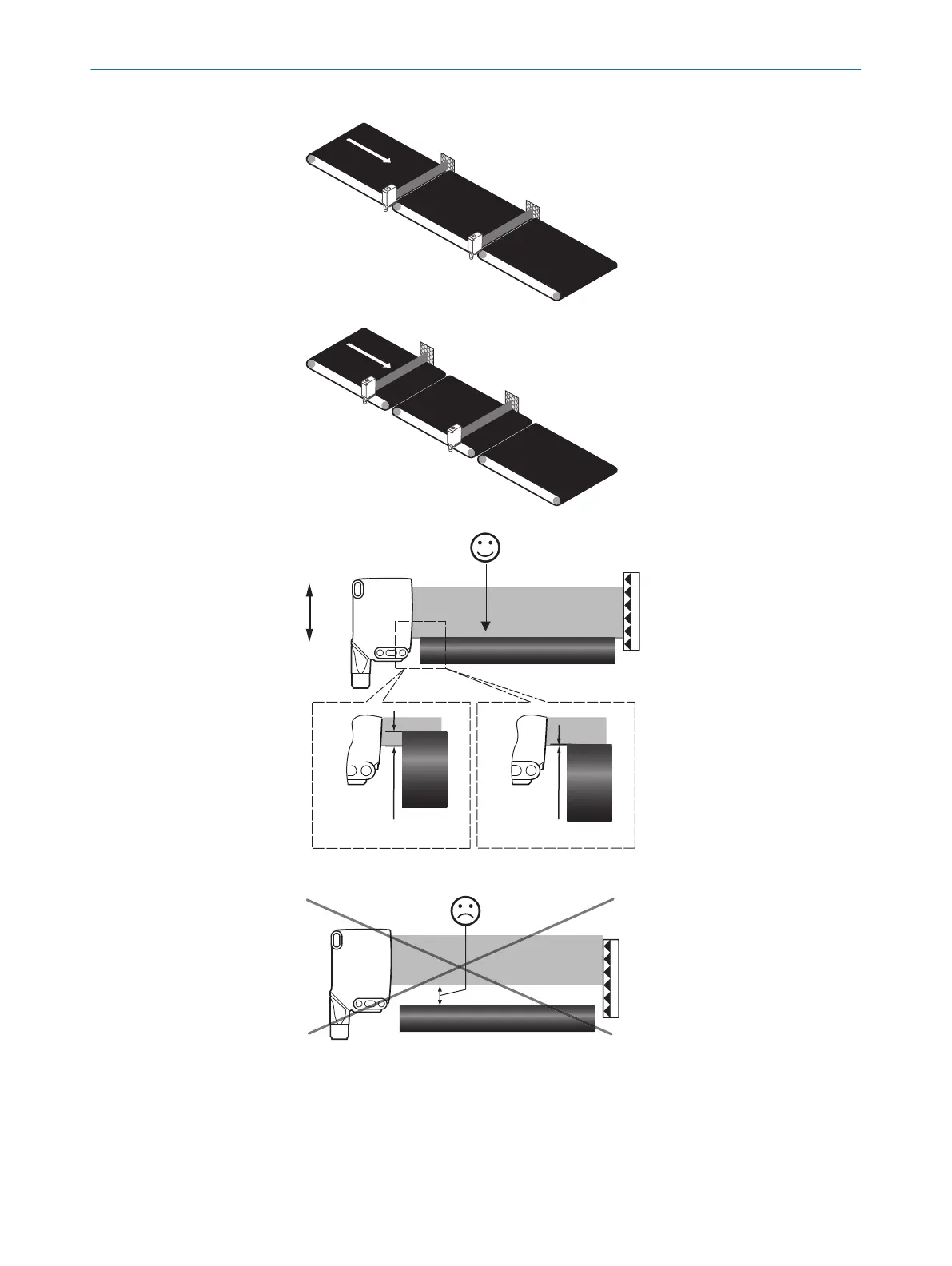 La franja de luz debe situarse en paralelo a la cinta transportadora.