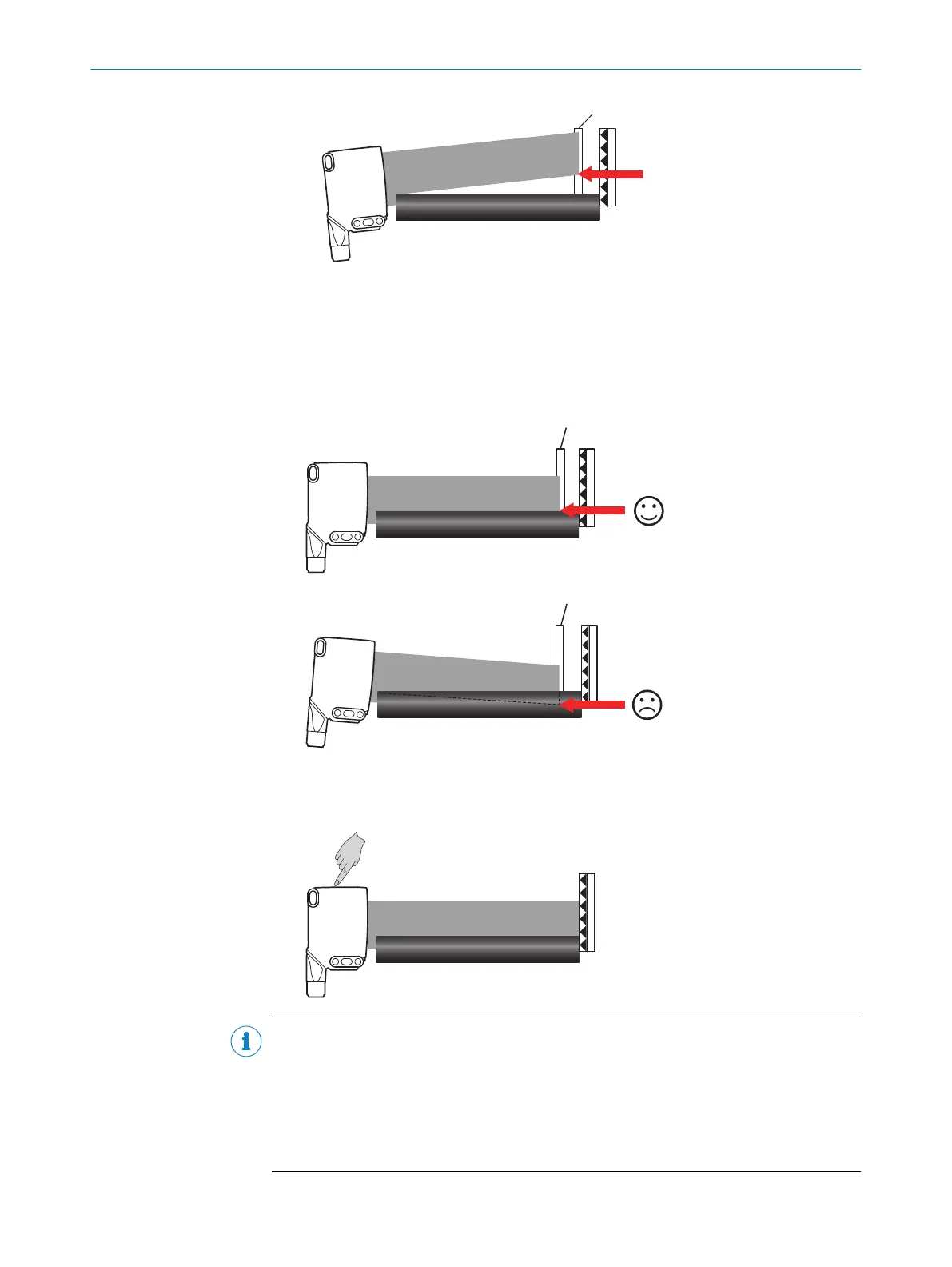 c) Gire el sensor un poco hacia abajo hasta que el borde inferior de la franja de luz