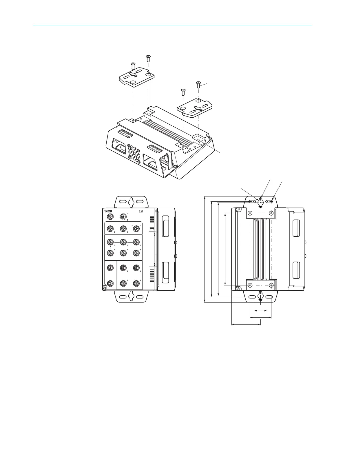 2. Mount the device with adapter plates at the mounting location (vertically sus‐