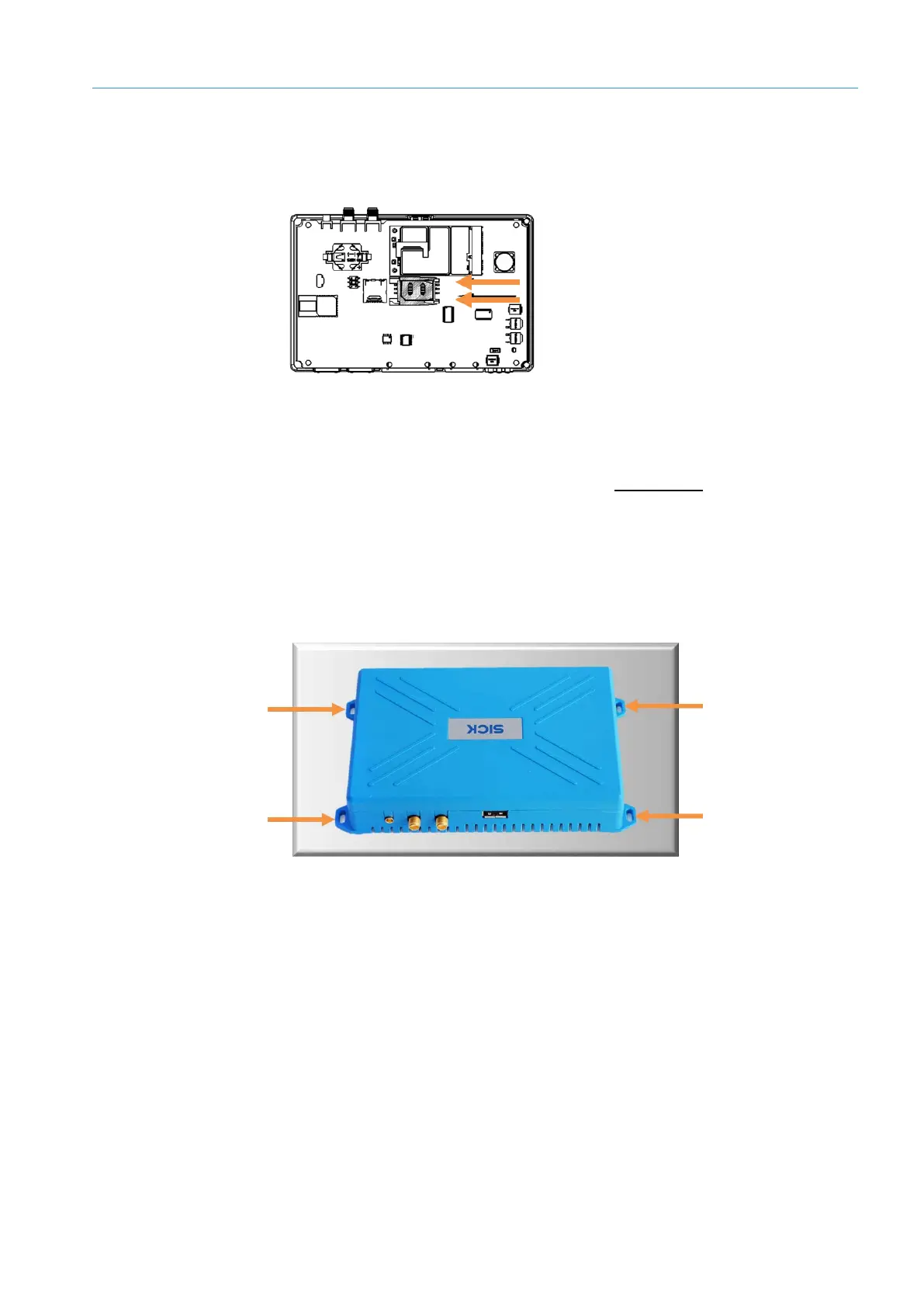 Use the mounting holes on the bottom of the device to mount it on a plate.