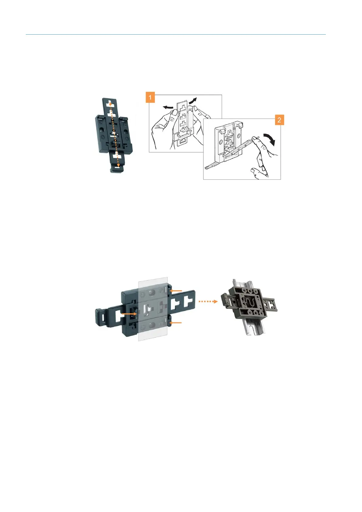 Fig. 14: Mounting on a mounting rail – Adjusting the mounting rail bracket