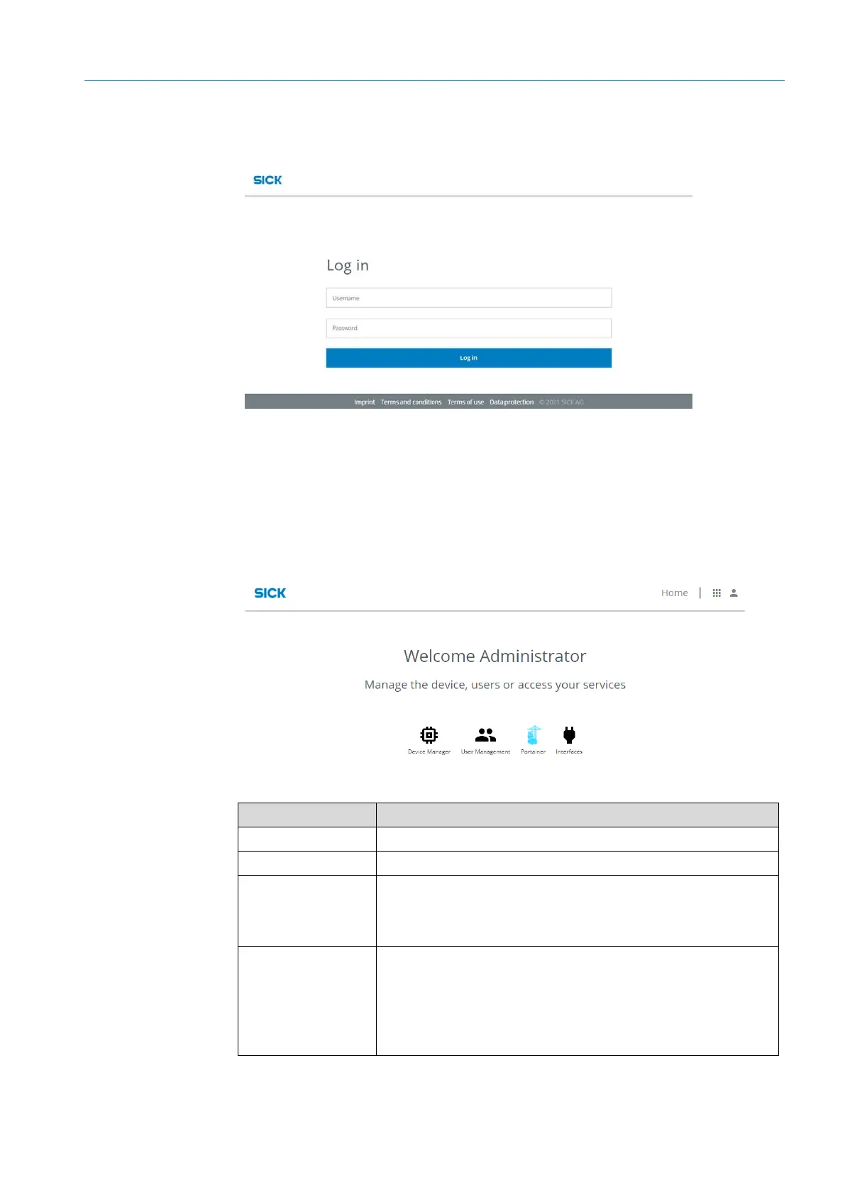 • It allows calling up of configuration tools as well as the user administration of the