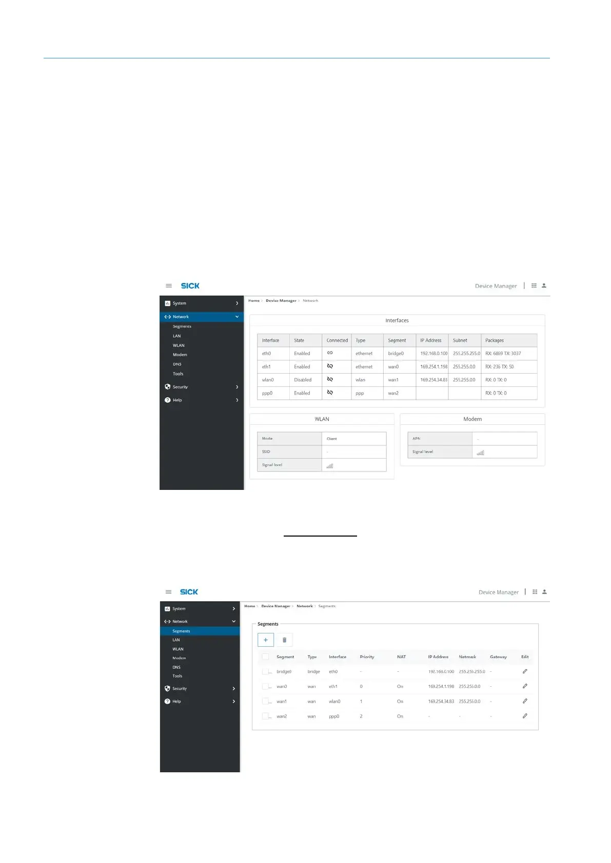 • The Device Manager allows management all network interfaces through the REST API