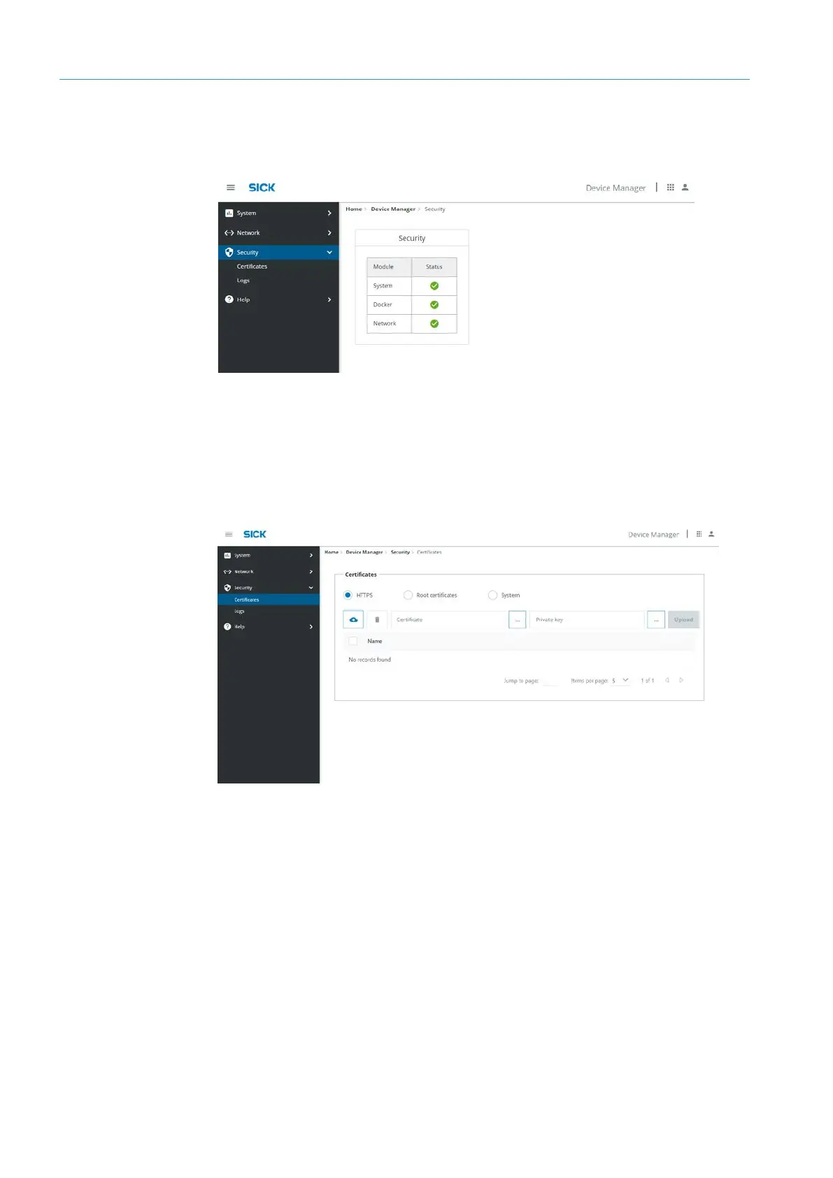 SICK TDC-E - Security Settings; Security; Certificates