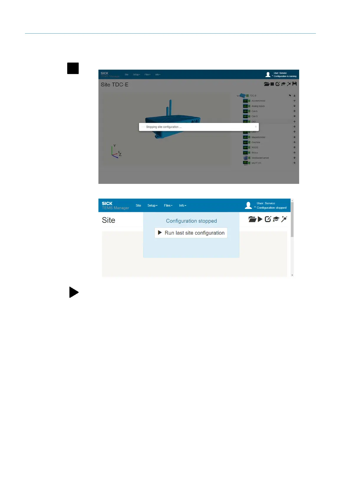 Then click on the Start current site configuration icon. The start progress bar