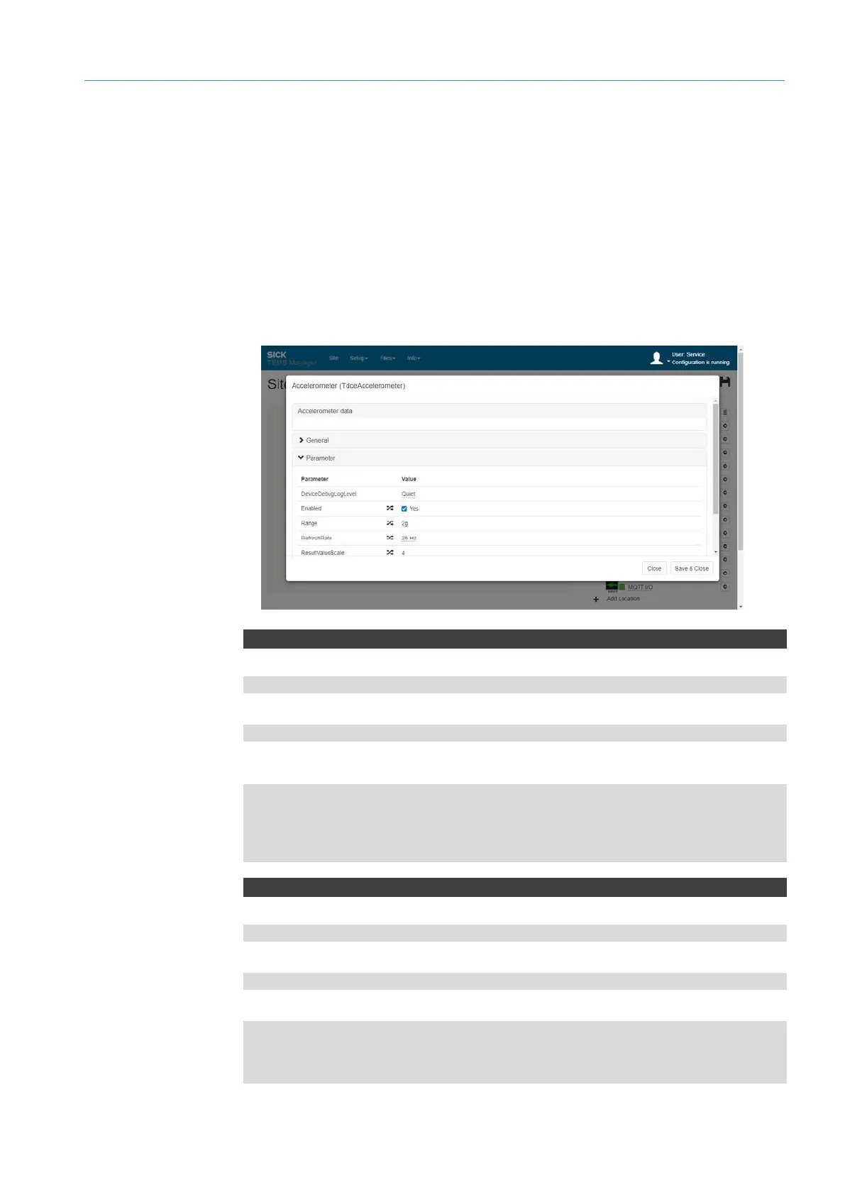 Open the Accelerometer connection parameter via the gear icon.
