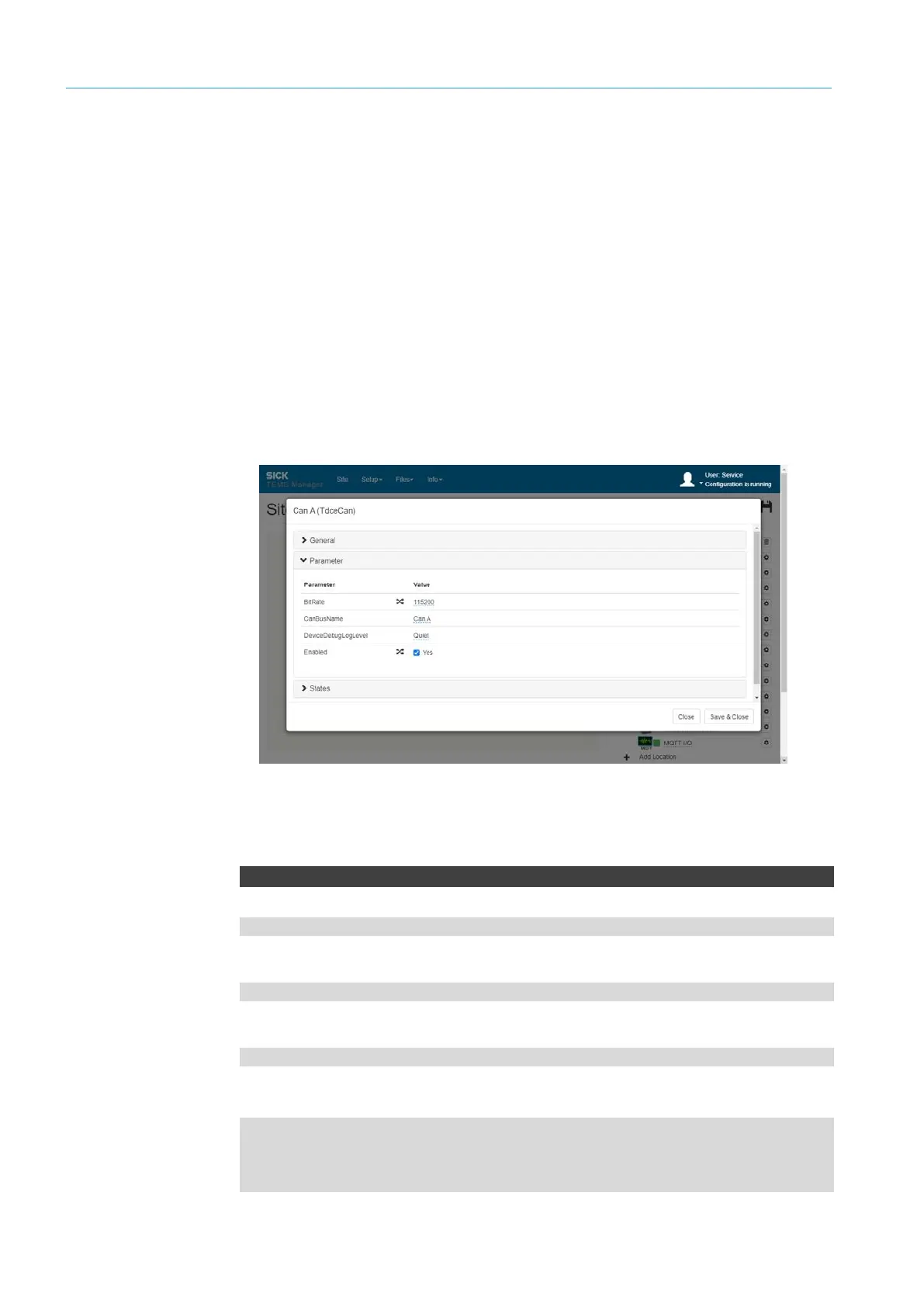 Open the CAN A or CAN B connection parameters via the gear icon.