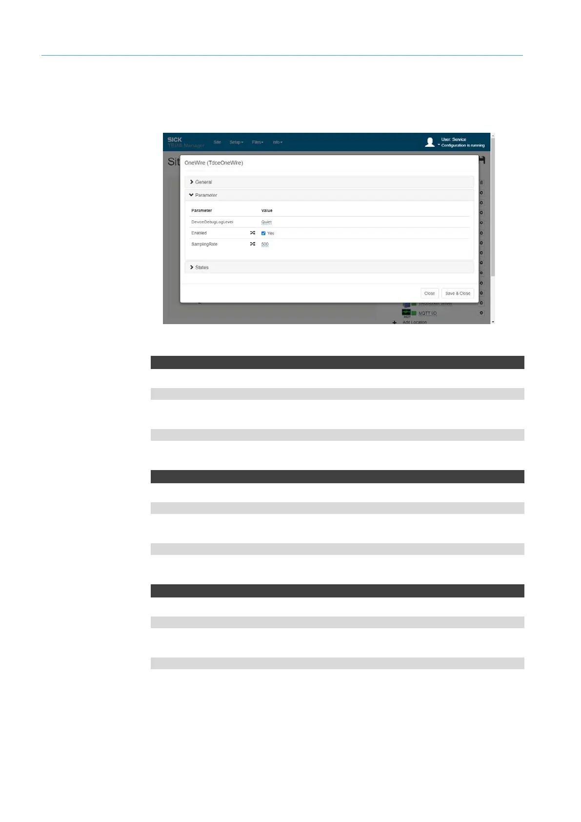 Open the OneWire connection parameter via the gear icon.