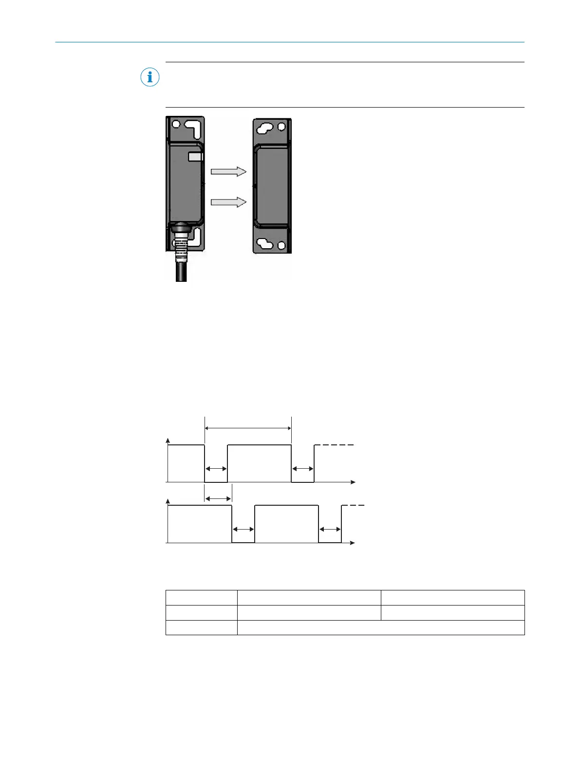 The safety locking device tests the OSSDs for self-diagnosis at regular intervals. To