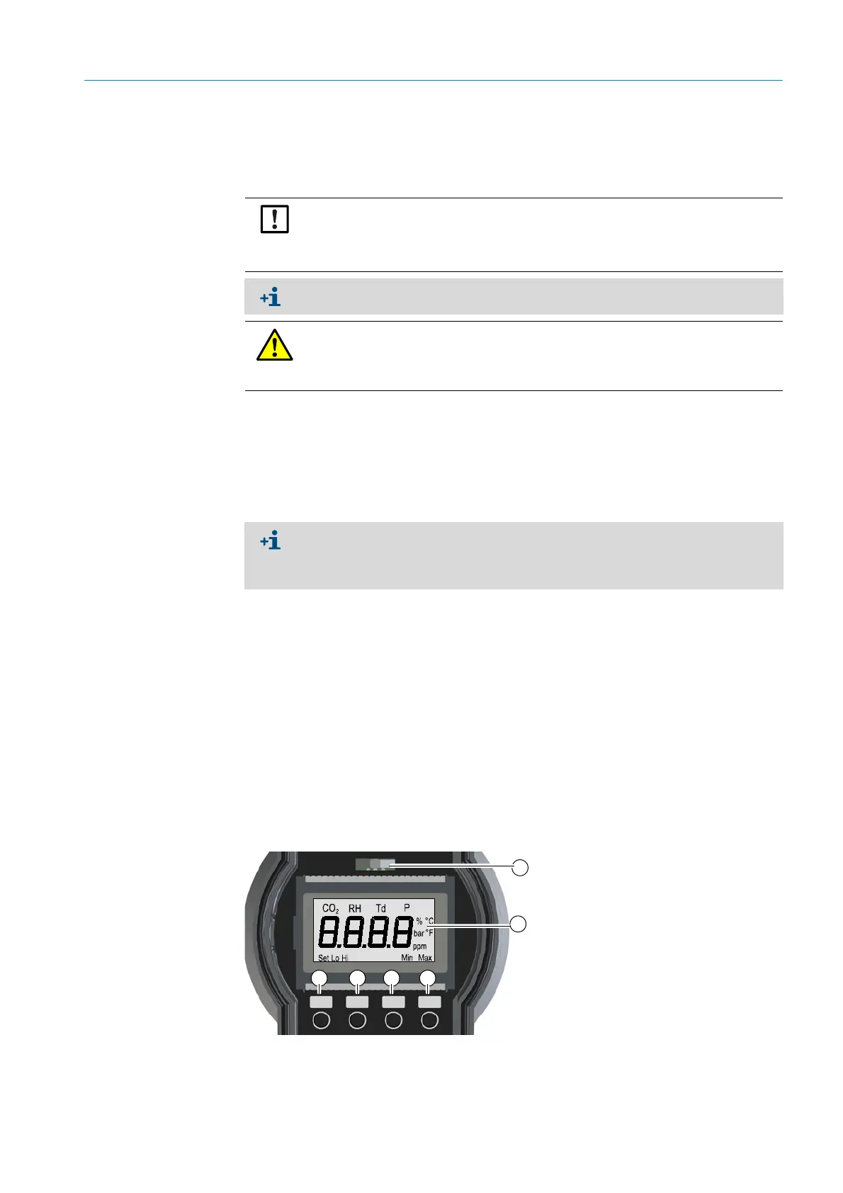 oxygen value is shown on the display. LEDs signal the operating mode of the measuring