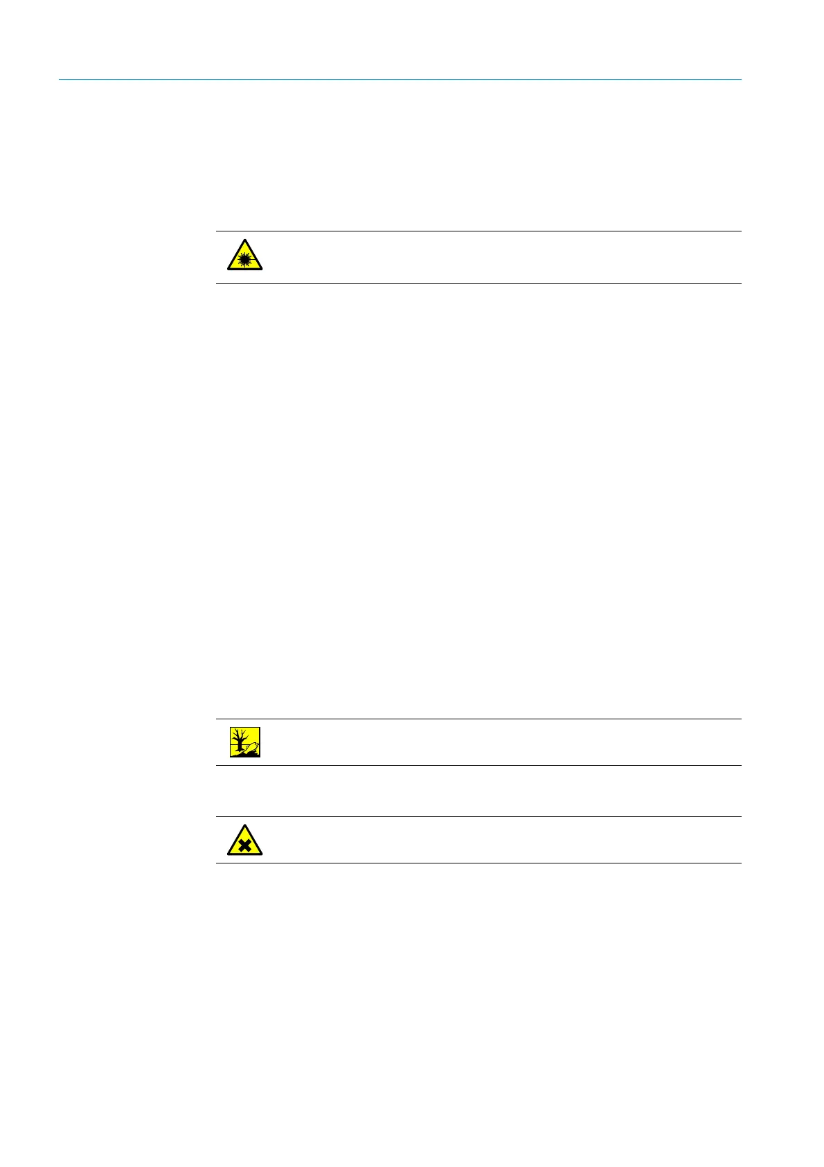 Never insert an optical instrument into the measuring gap to possibly divert the laser