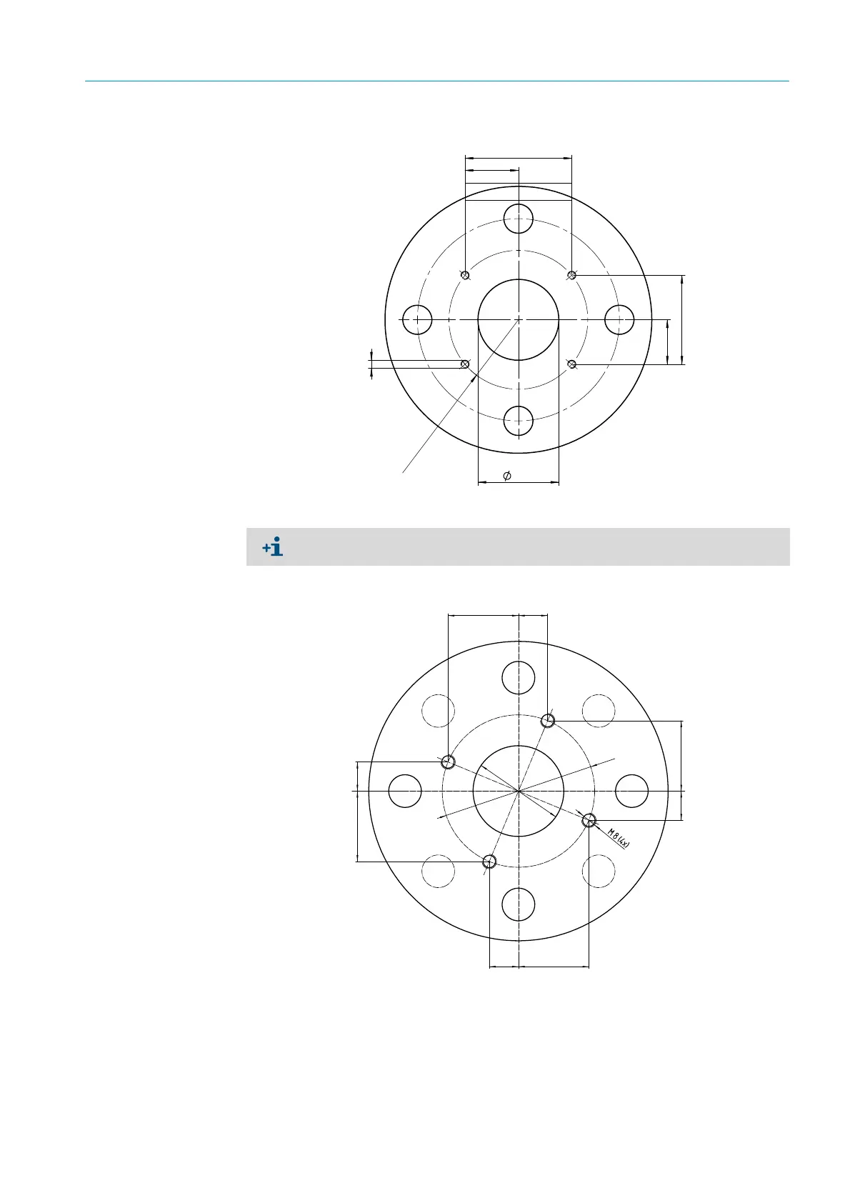 Fig. 44: Mounting flange with M8 bolts suitable for PS=10 bar