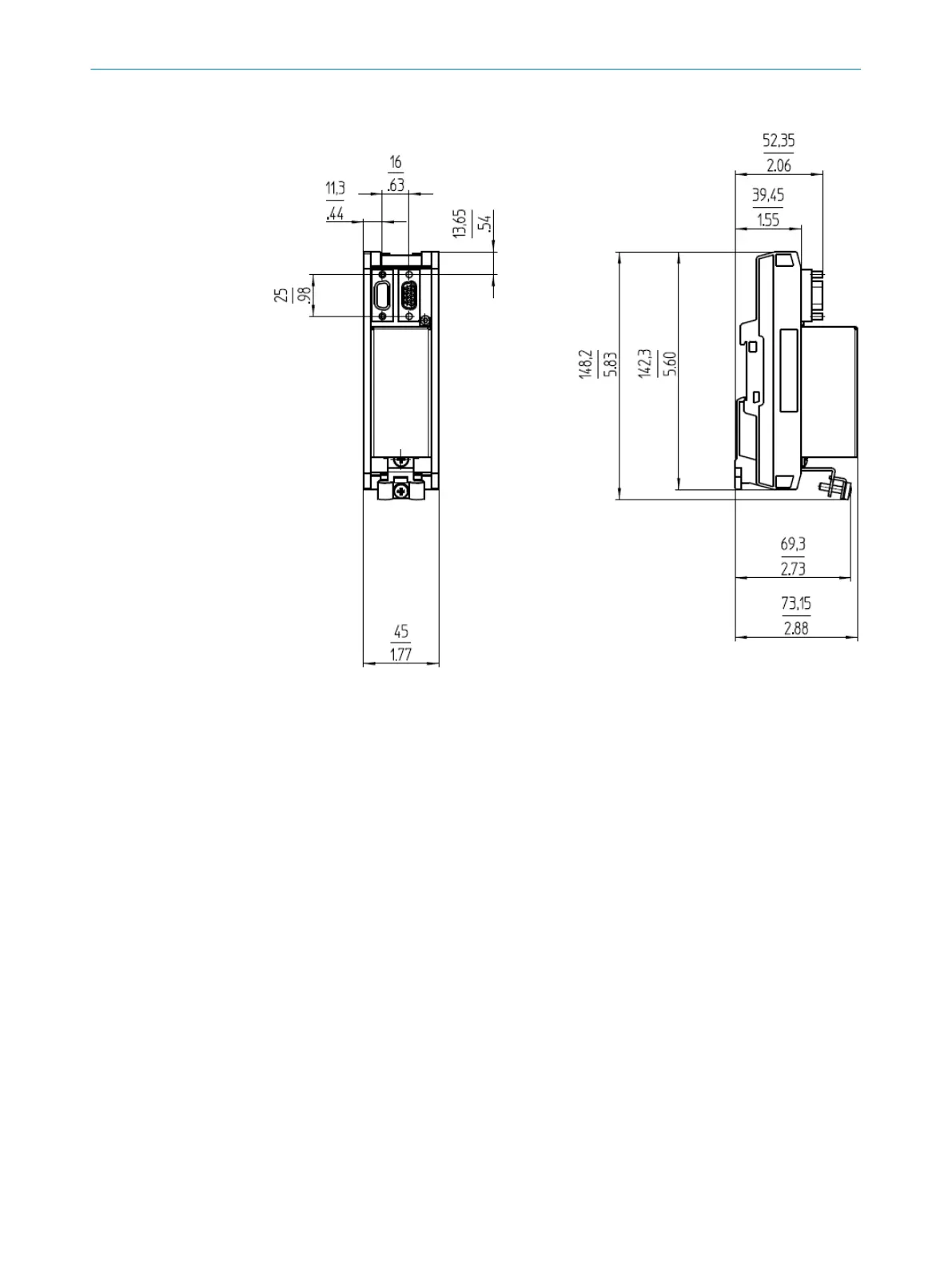Figure 75: Dimensional drawing for the FX3-EBX3 encoder/motor feedback connection box